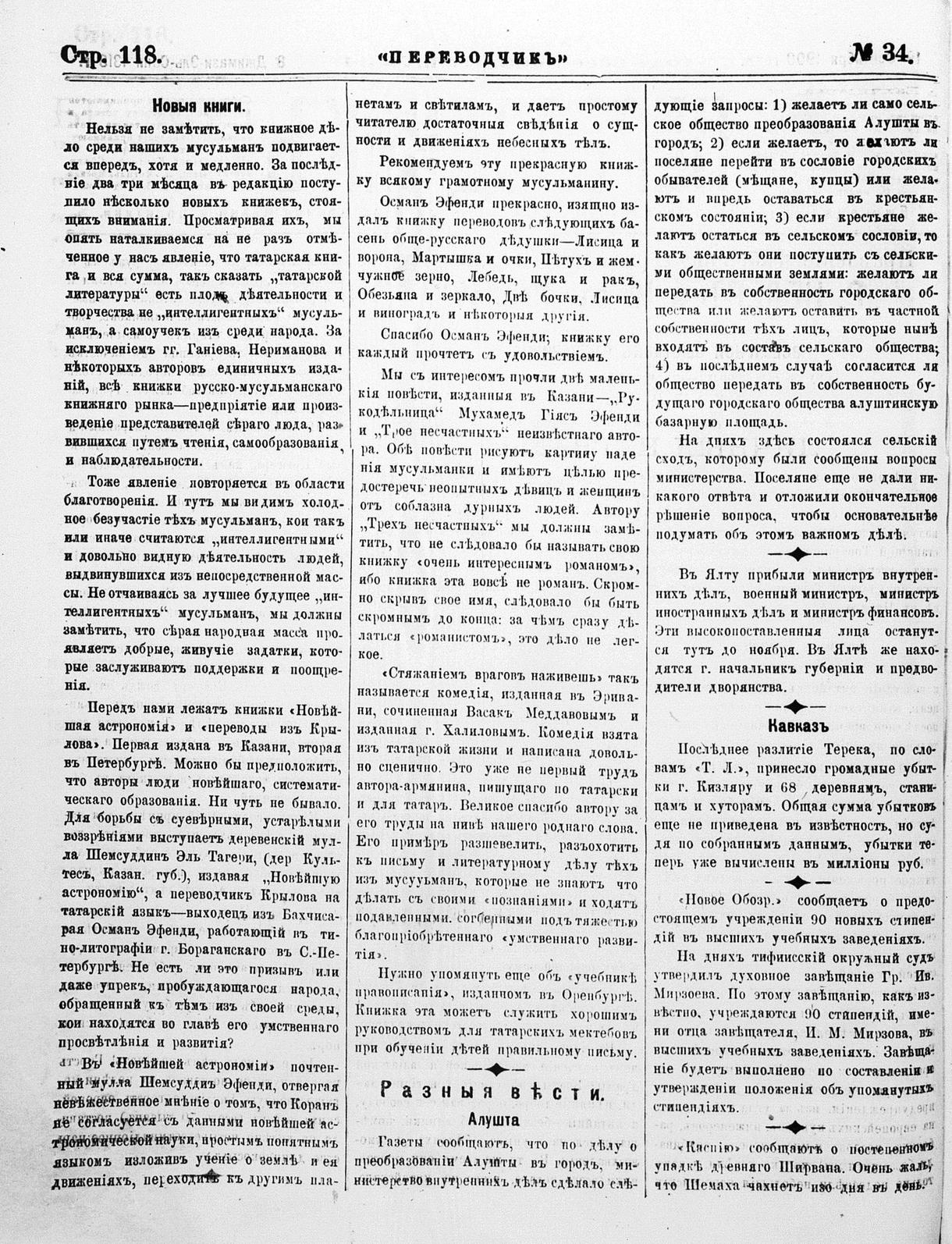 Turkish-Russian newspaper published in Crimea by İsmail Gaspıralı.
