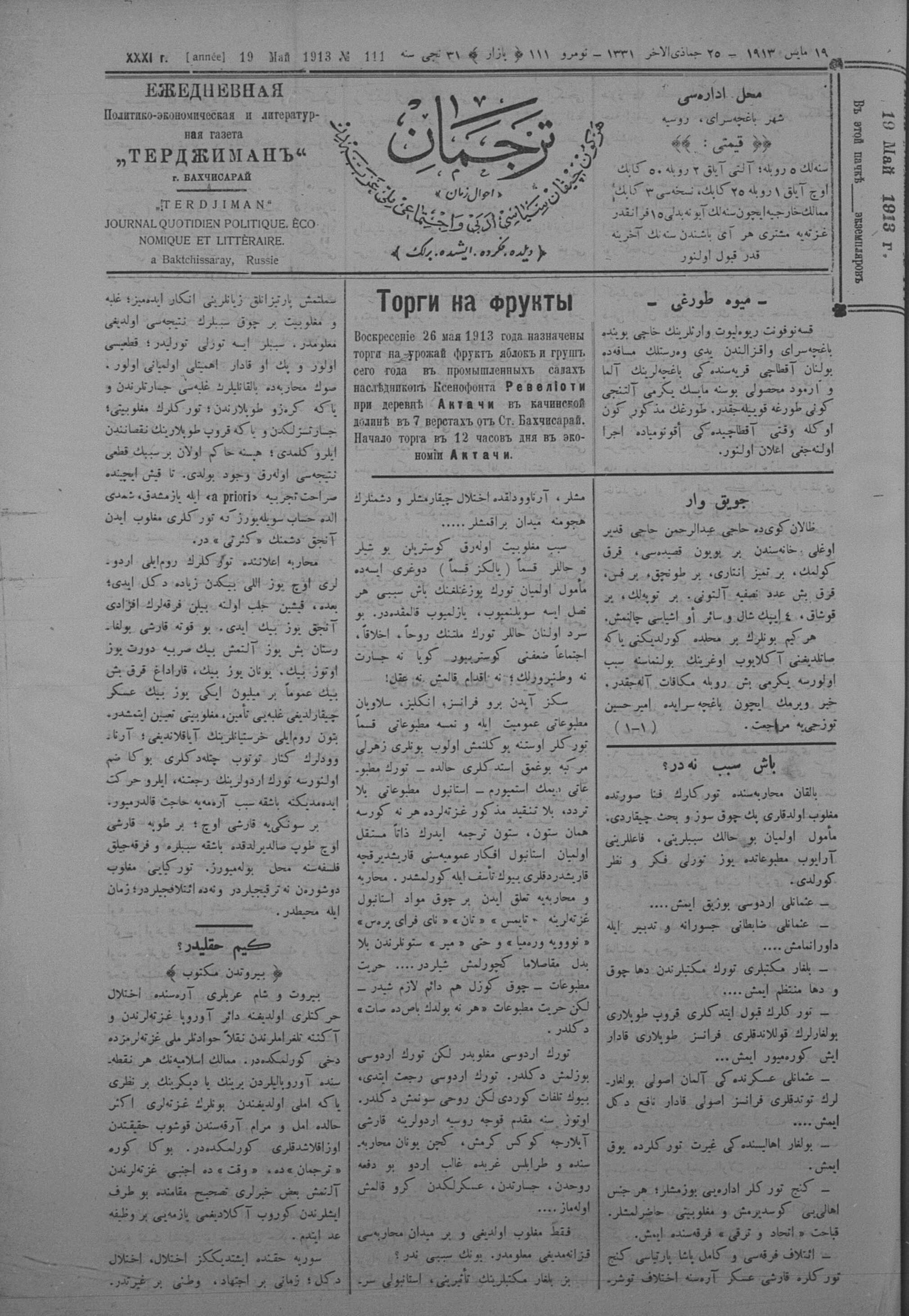 Tercüman, 19 May 1913 Year 31 No 111