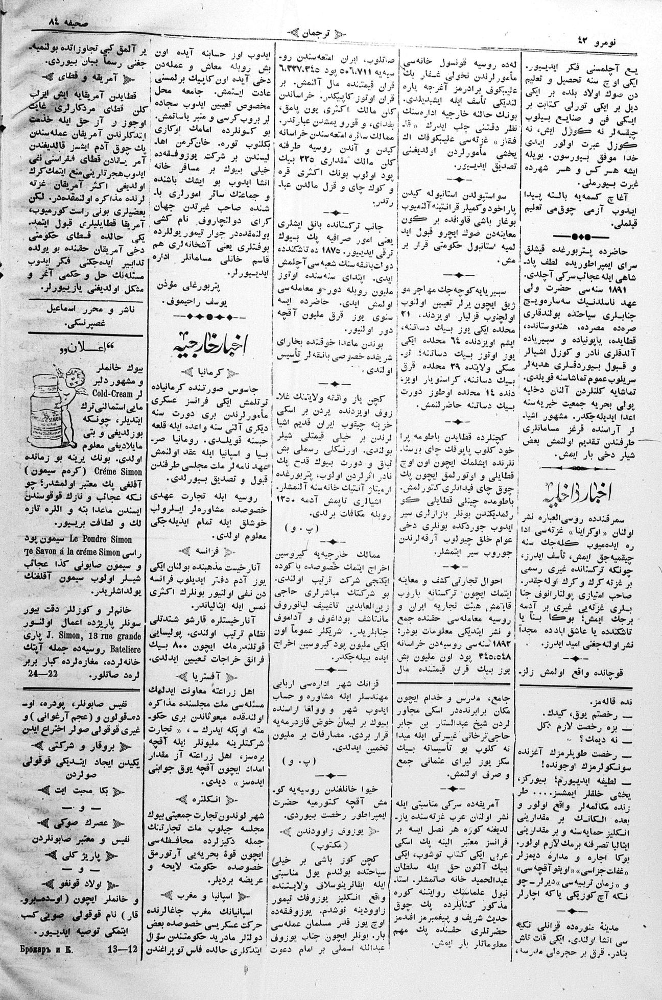 The name of the newspaper changed to Tercüman-ı Ahval-i Zaman in 1905. In 1909, it started to be published under its first name, Tercüman.