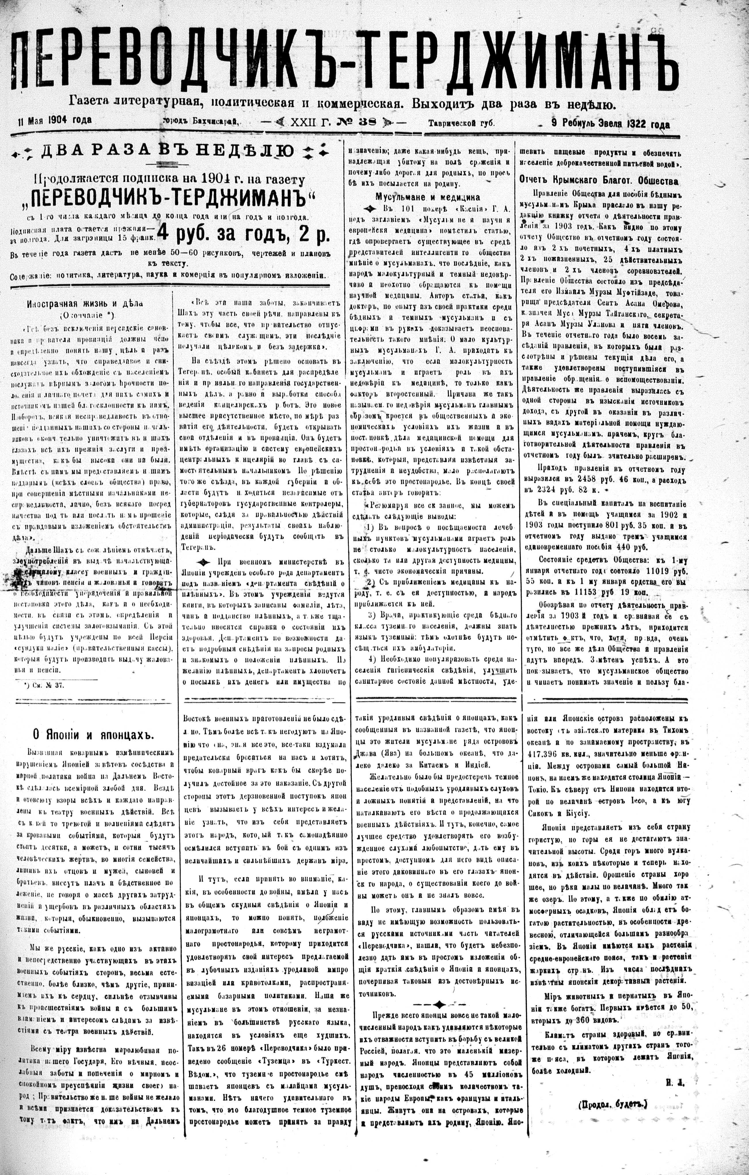 Turkish-Russian newspaper published in Crimea by İsmail Gaspıralı.