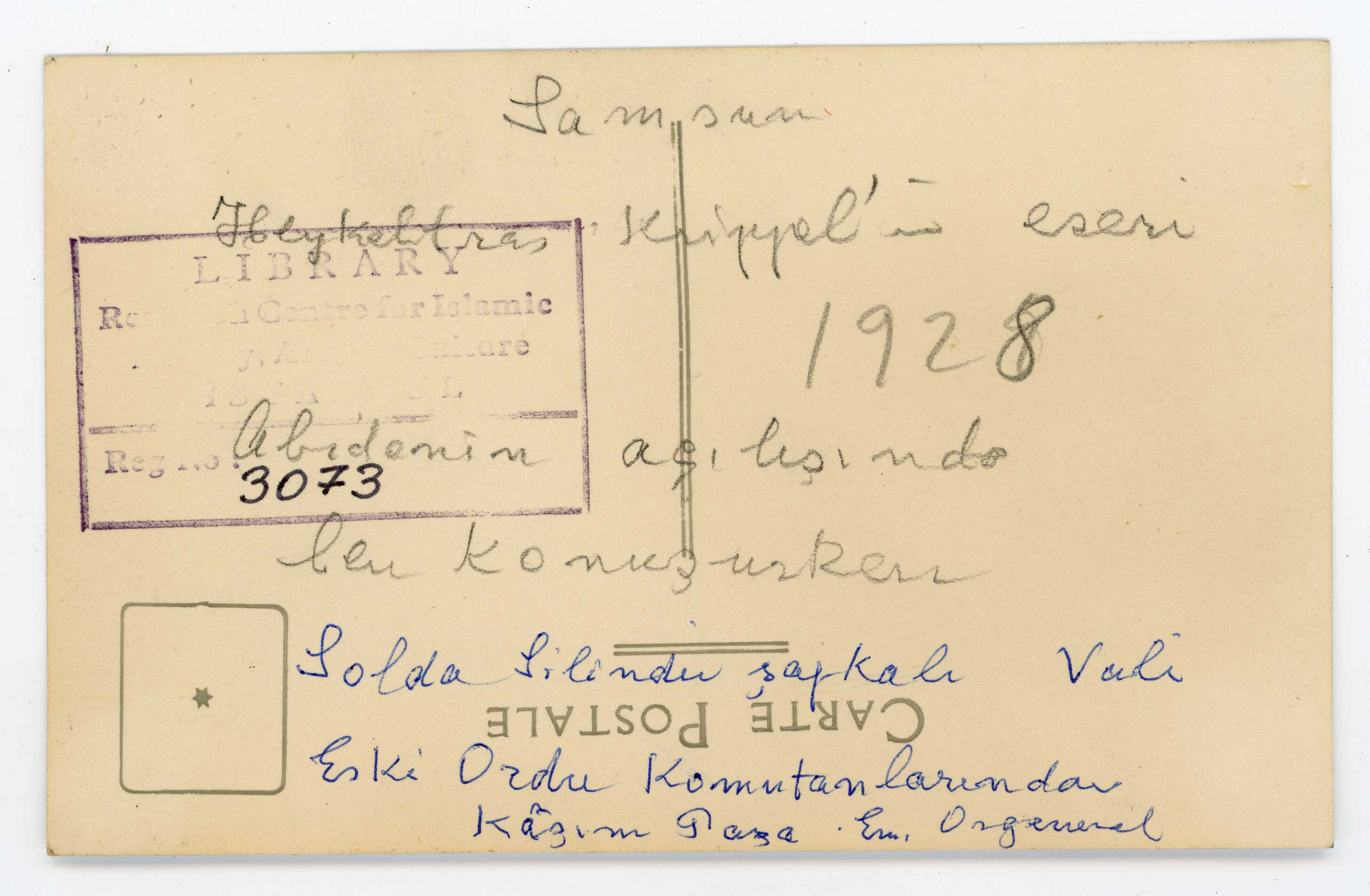 Samsun Atatürk Heykeli'nin açılış töreninde Samsun Valisi Kâzım Paşa, konuşan ise Emekli Süvari Yüzbaşı Ekrem Rüştü Akömer