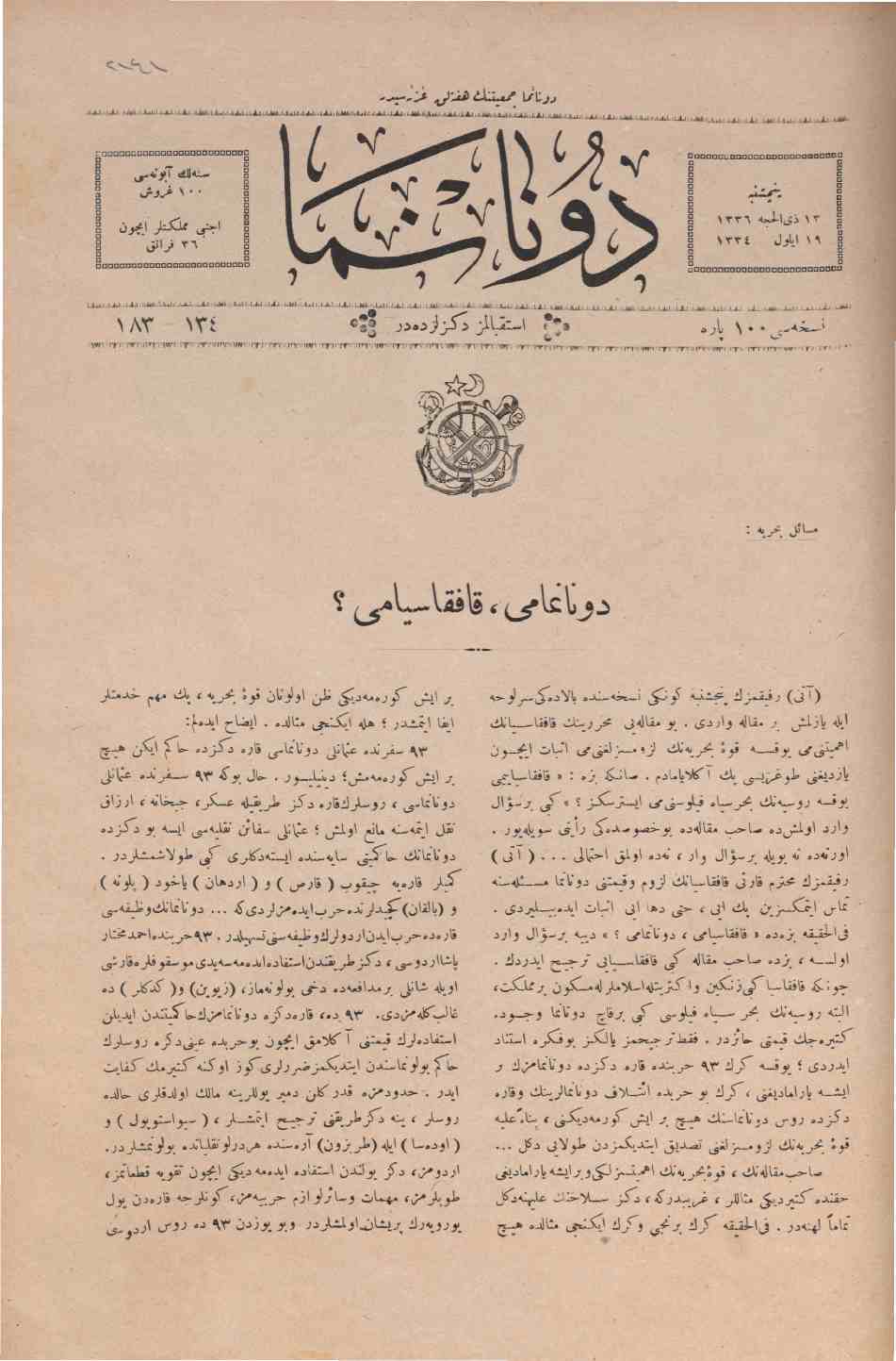 Donanma mecmuası, Eylül 1334 No 183-134