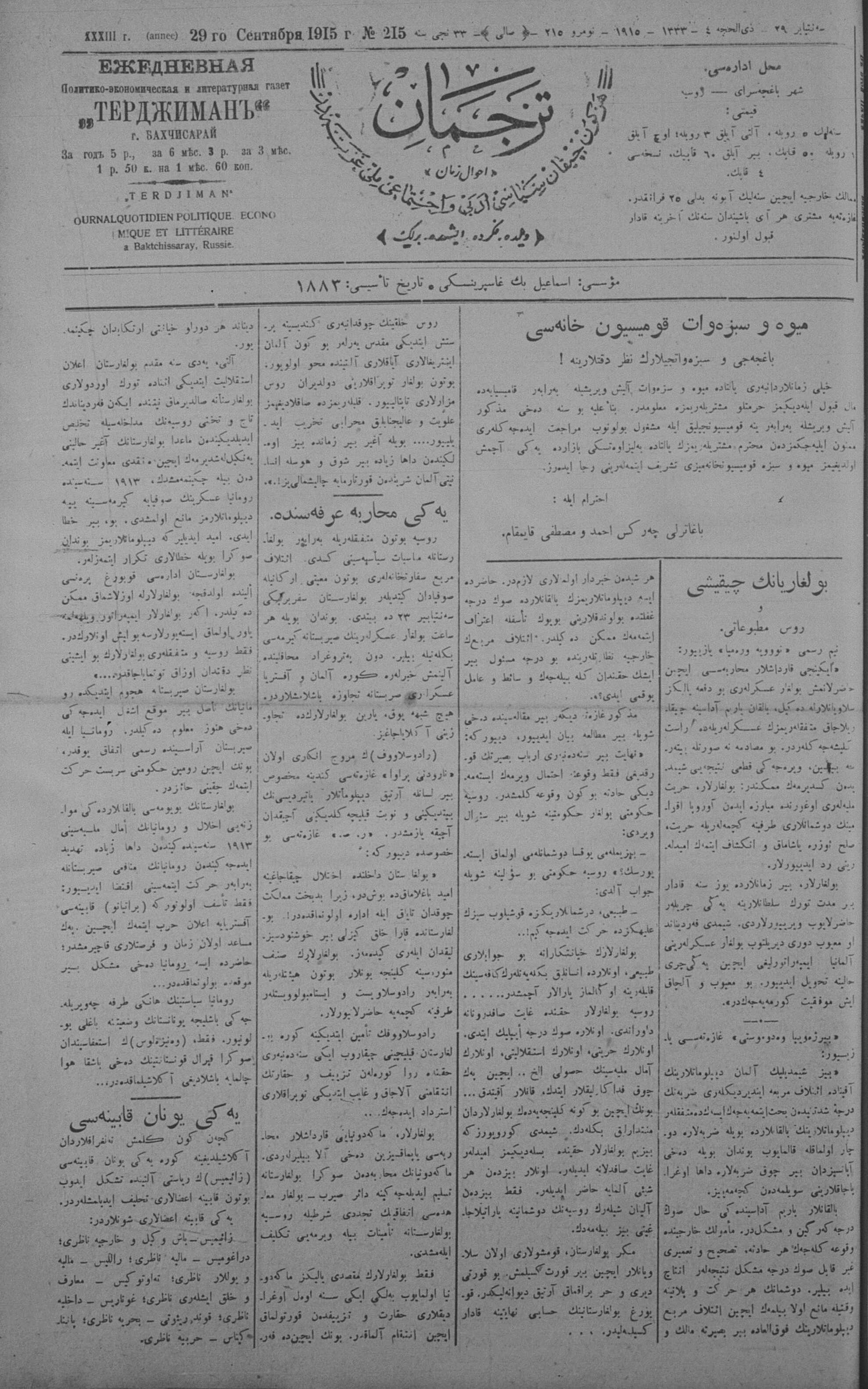 Turkish-Russian newspaper published in Crimea by İsmail Gaspıralı.