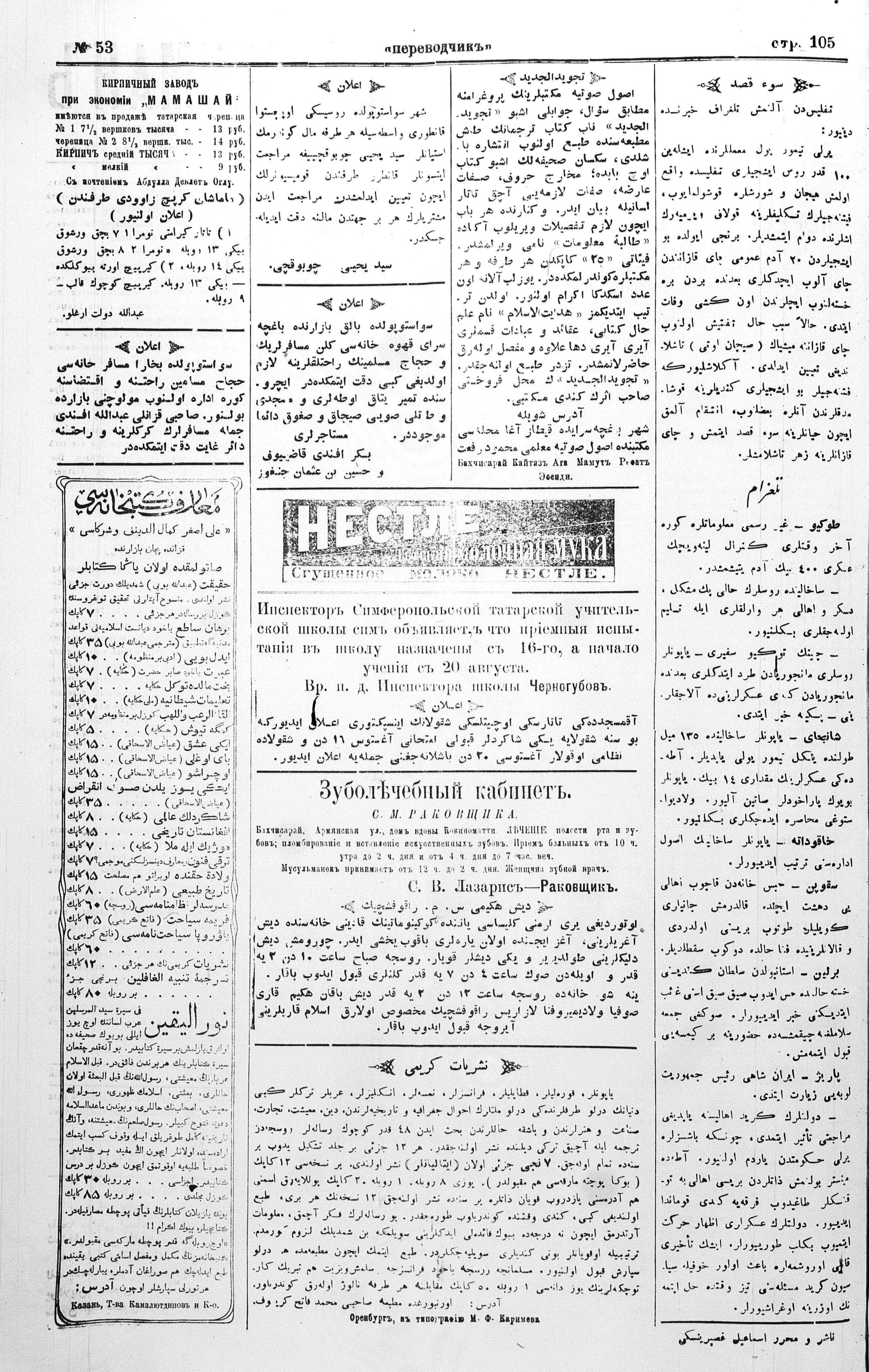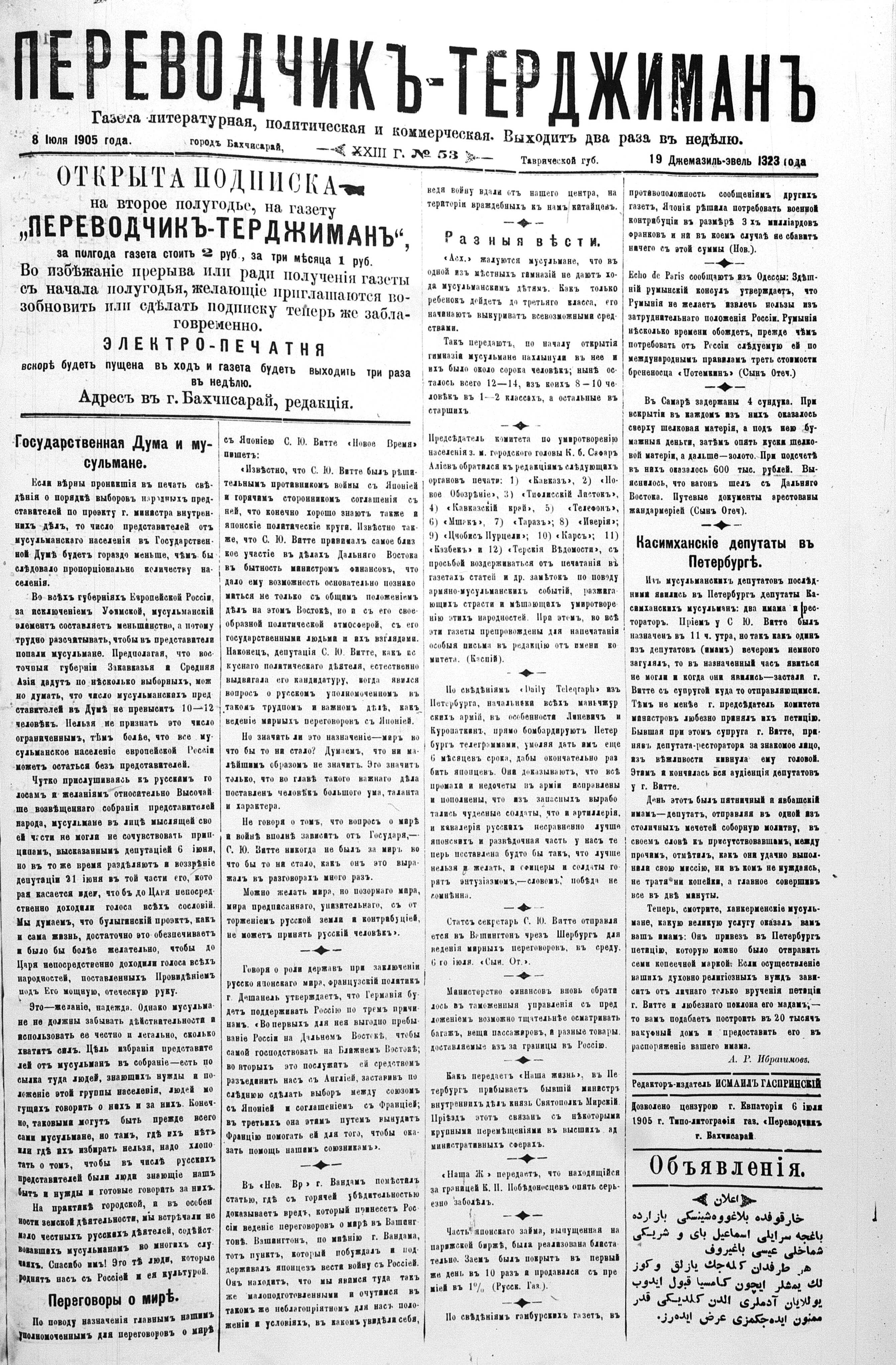 Turkish-Russian newspaper published in Crimea by İsmail Gaspıralı.