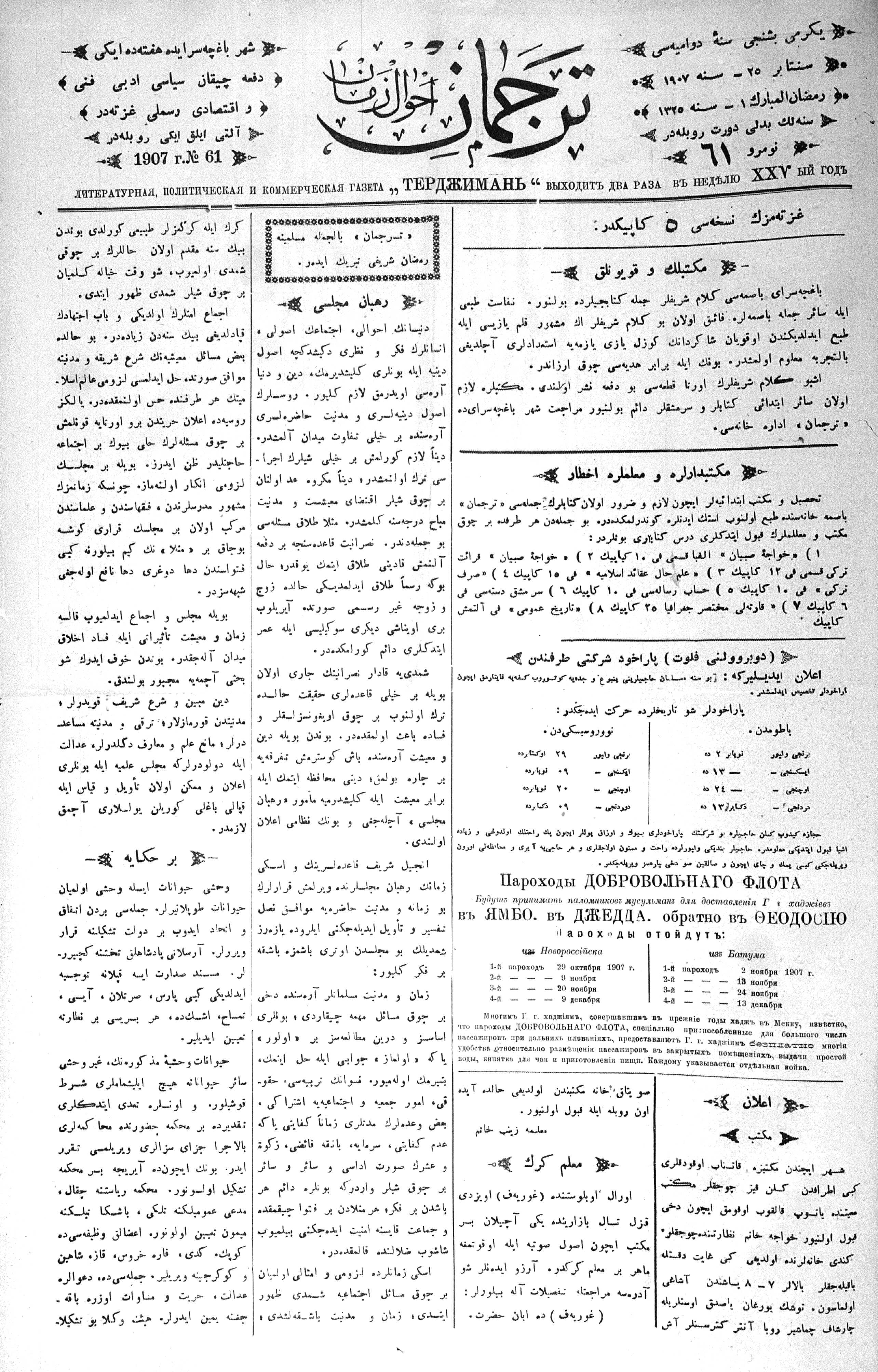 Tercüman, 25 September 1907 Year 25 No 61