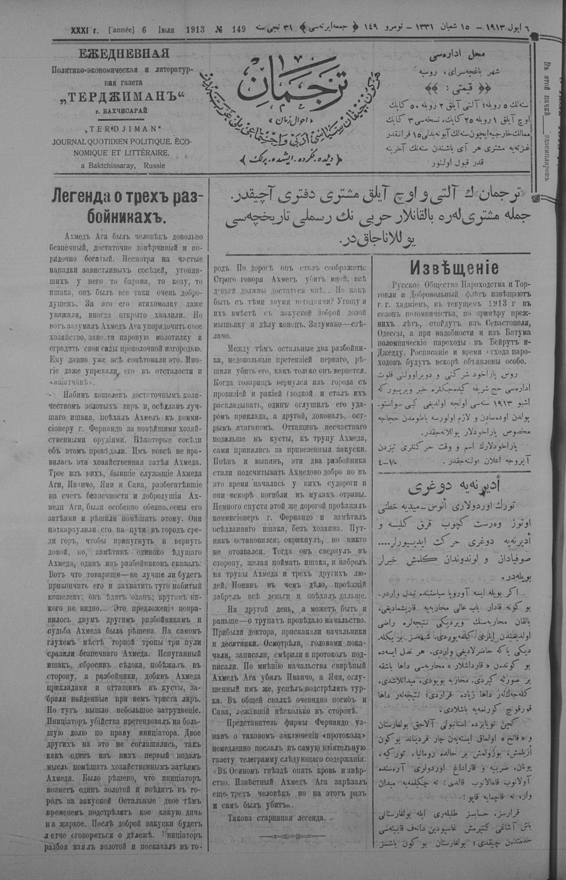 Tercüman, 06 July 1913 Year 31 No 149