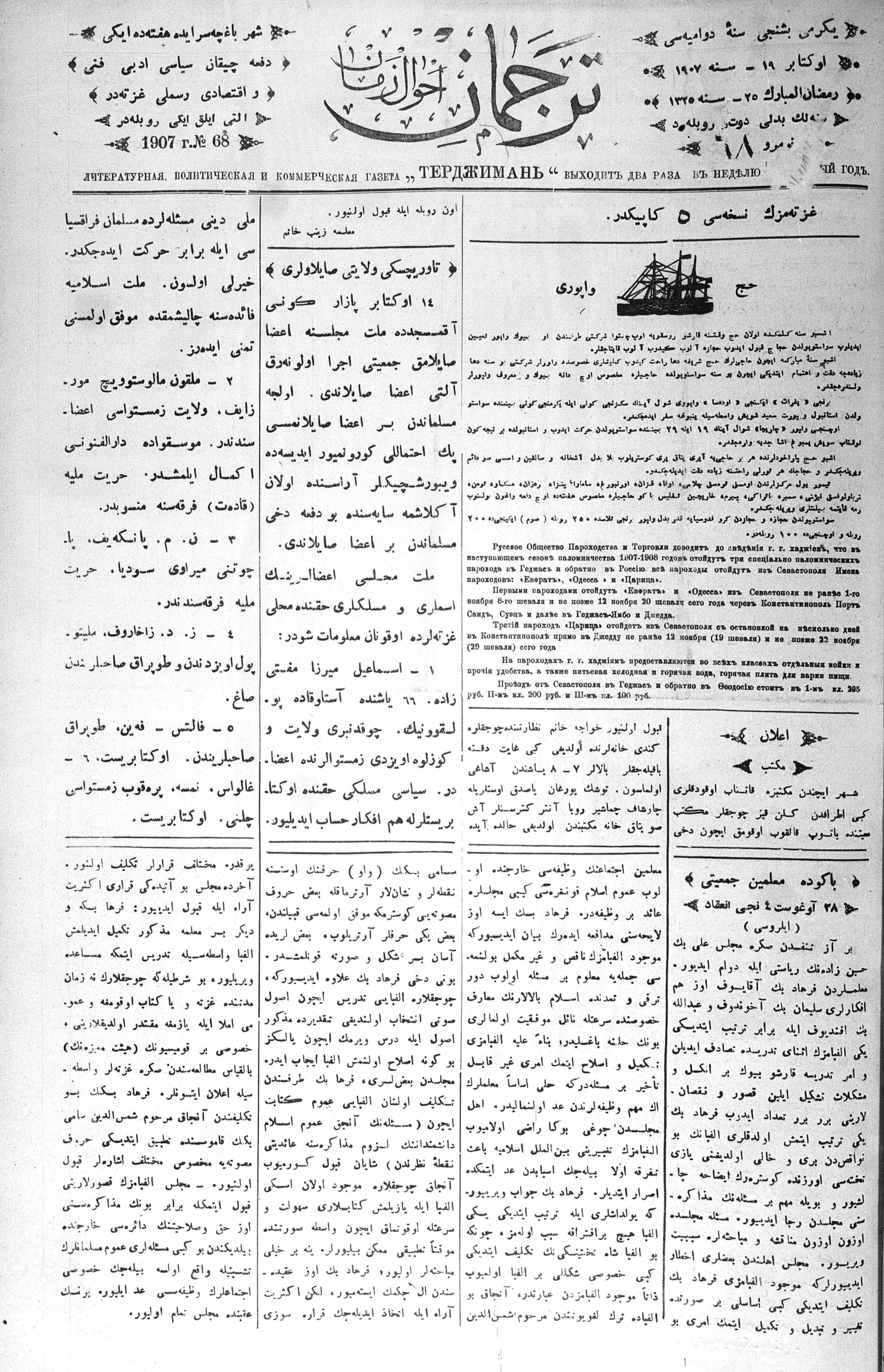 Tercüman, 19 October 1907 Year 25 No 68