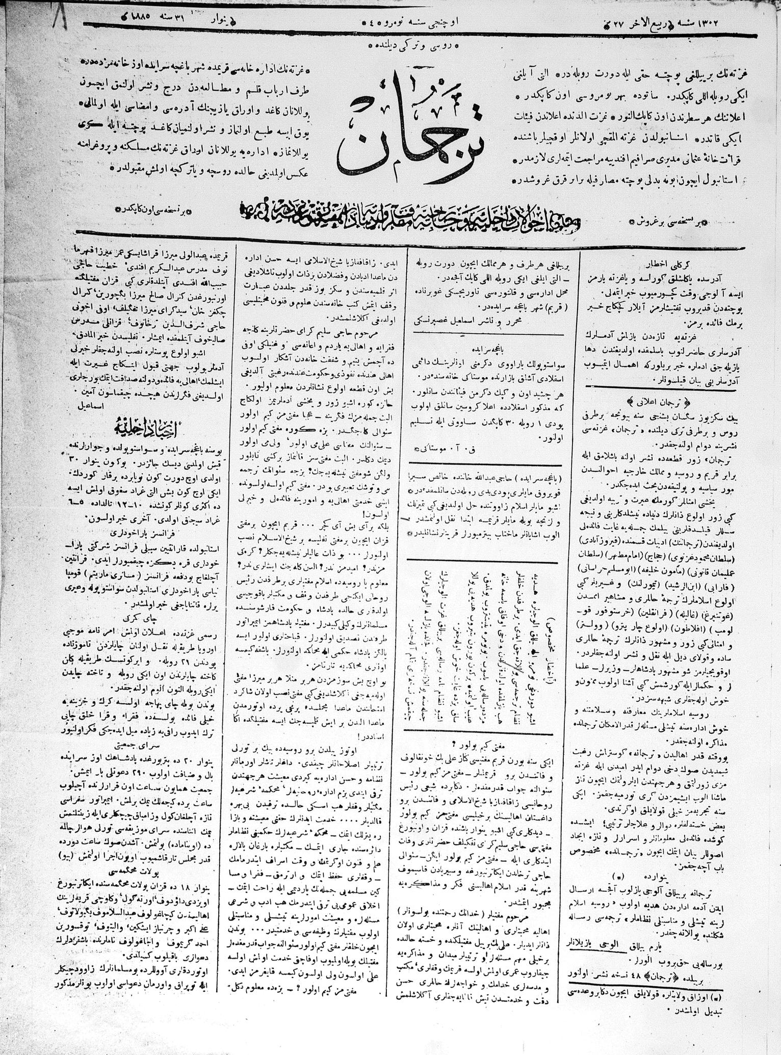 The name of the newspaper changed to Tercüman-ı Ahval-i Zaman in 1905. In 1909, it started to be published under its first name, Tercüman.