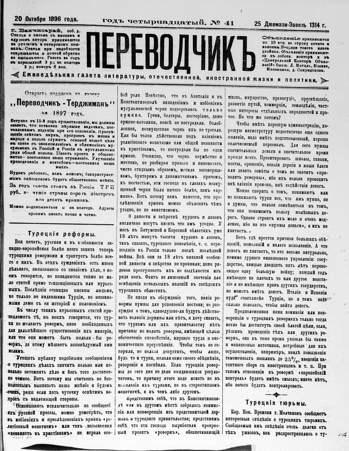Tercüman, 20 October 1896 Year 14 No 41