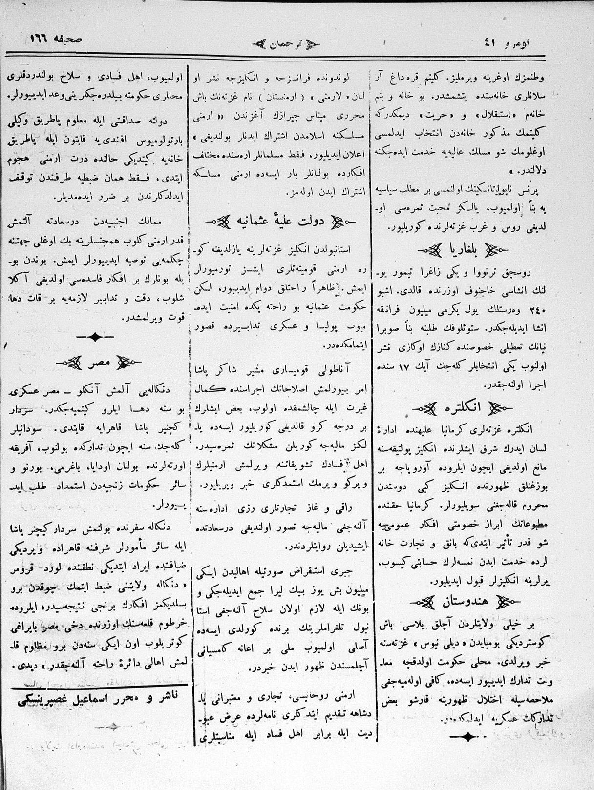 The name of the newspaper changed to Tercüman-ı Ahval-i Zaman in 1905. In 1909, it started to be published under its first name, Tercüman.