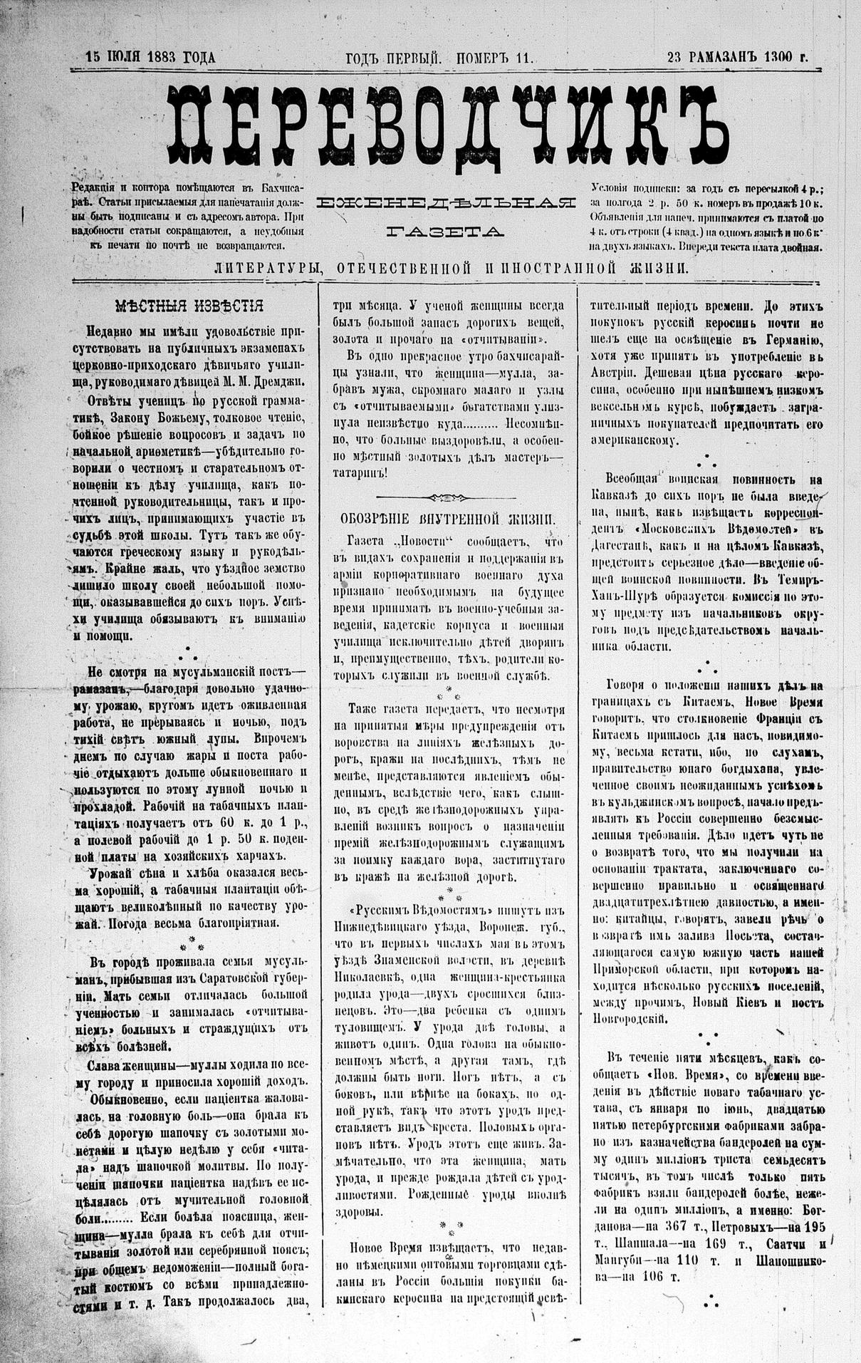Turkish-Russian newspaper published in Crimea by İsmail Gaspıralı.