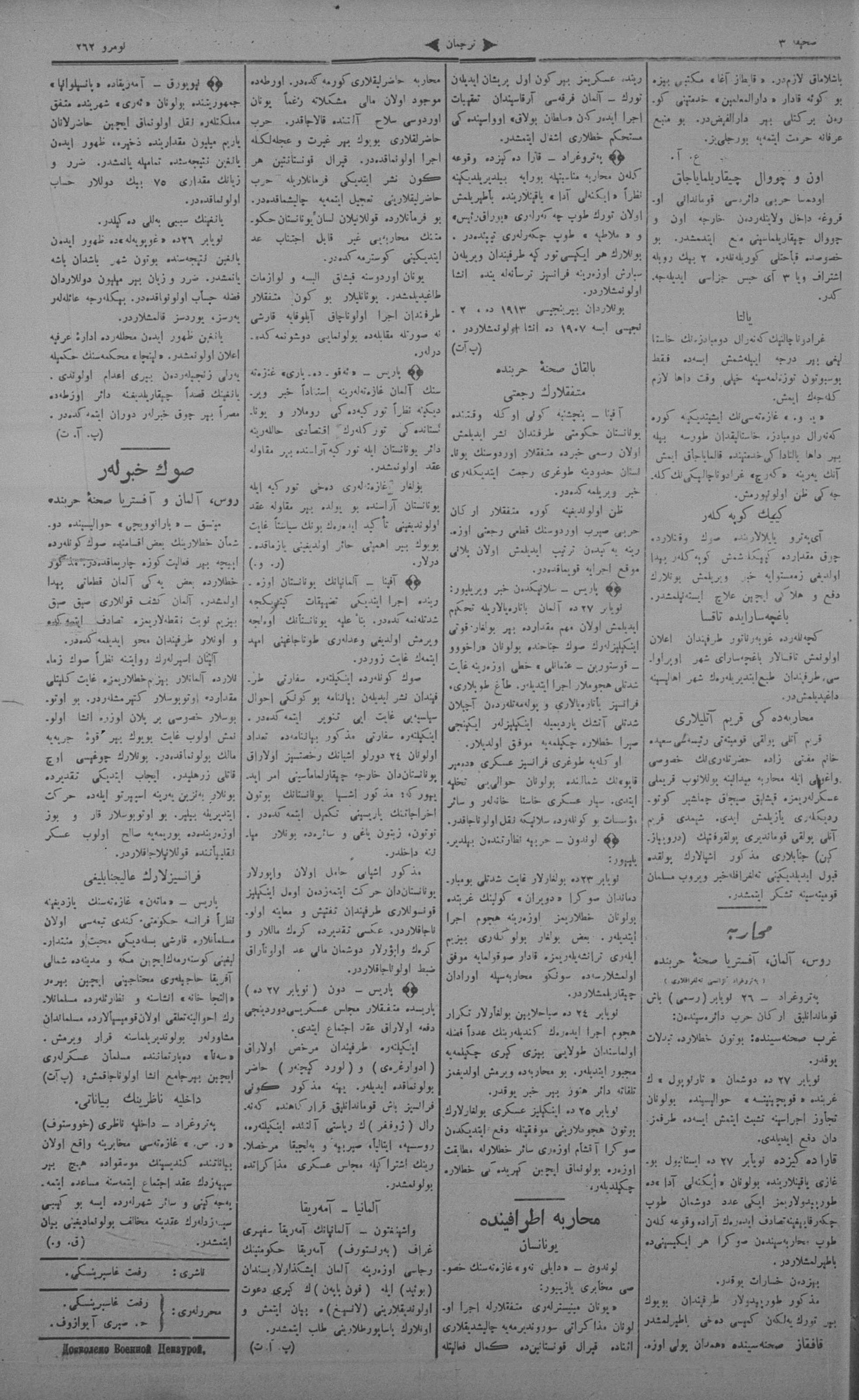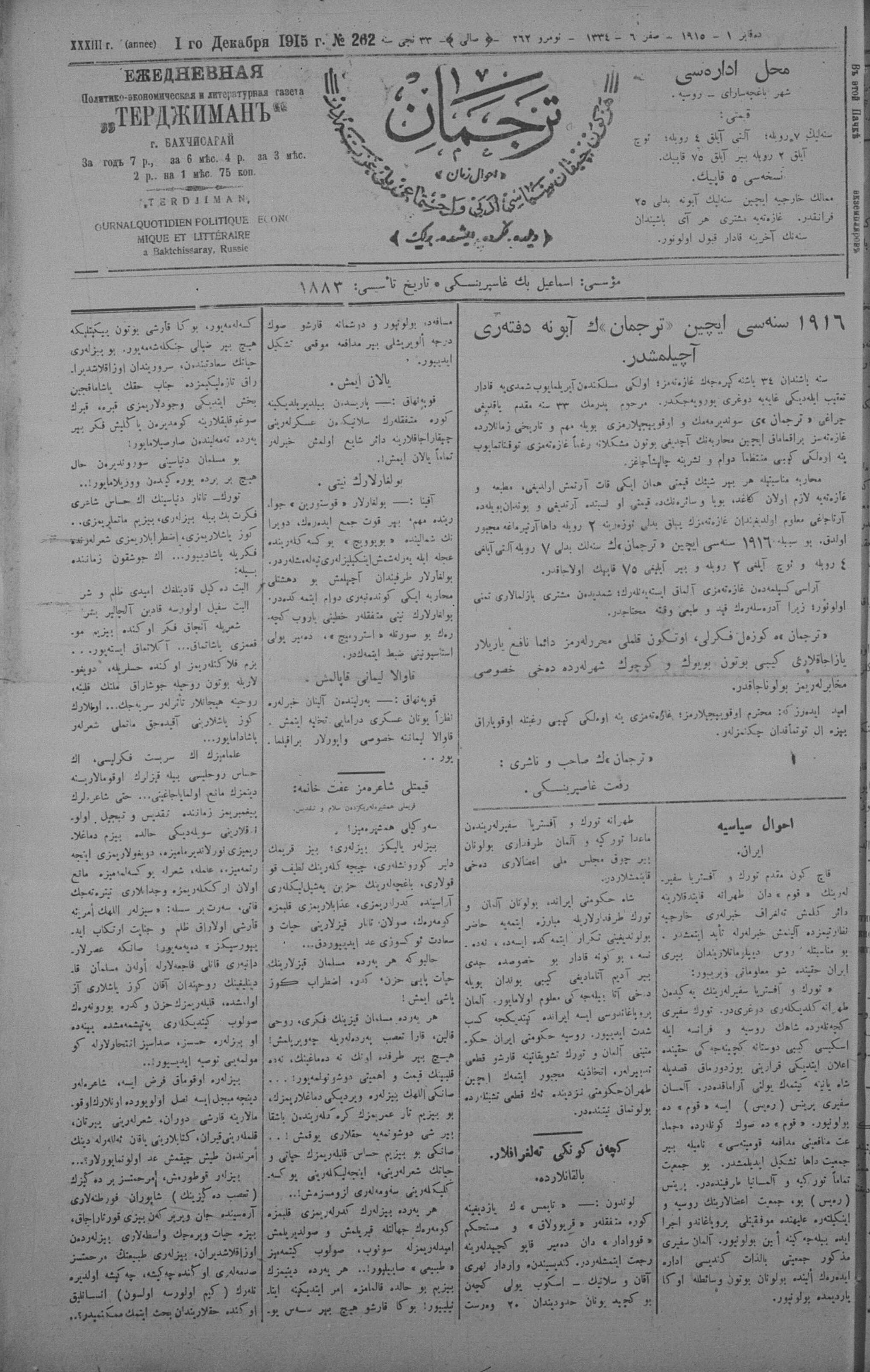 Tercüman, 01 December 1915 Year 33 No 262