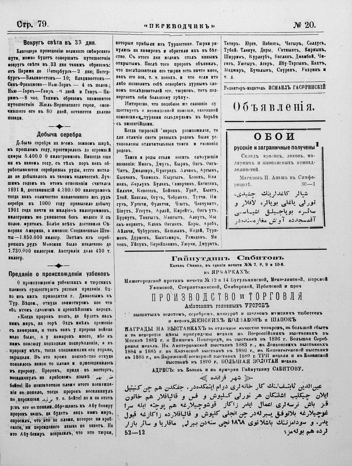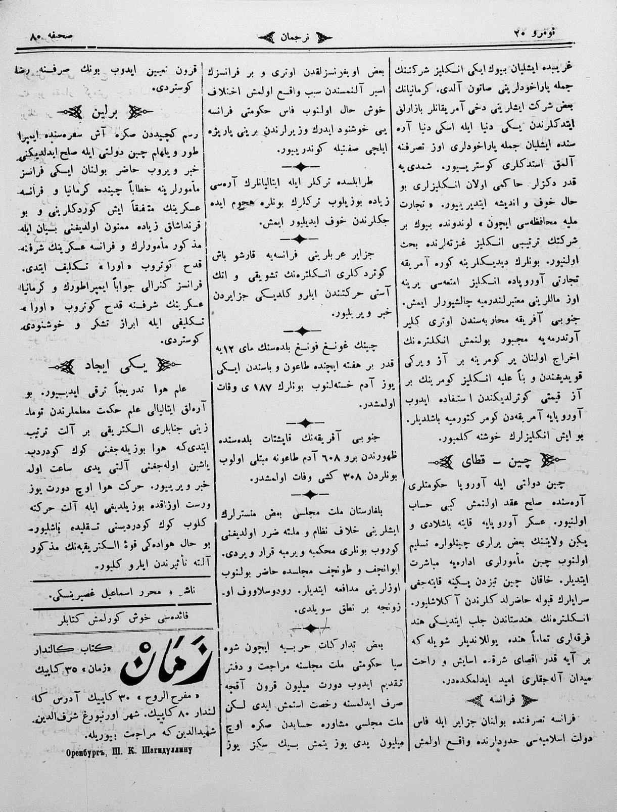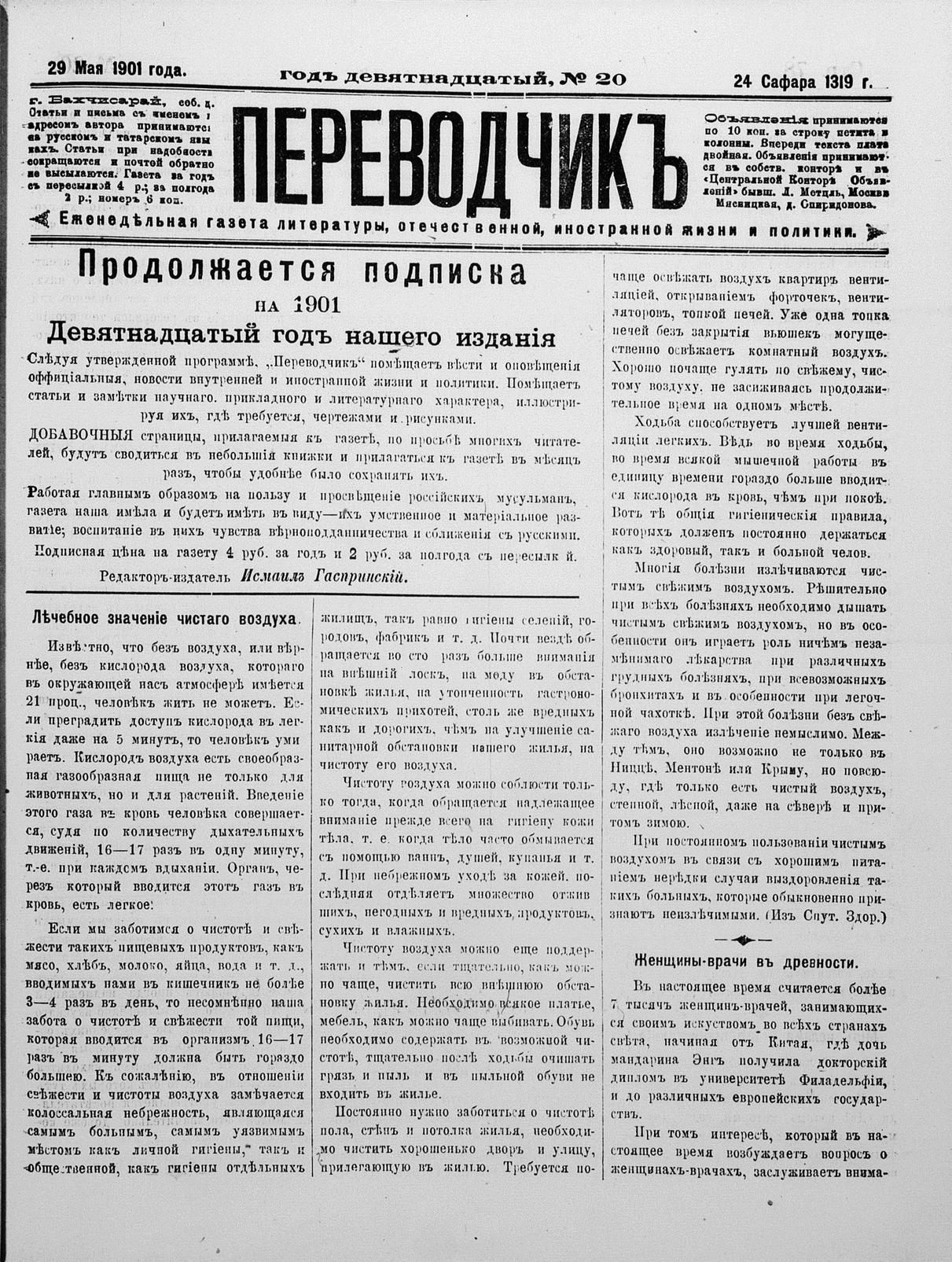 Turkish-Russian newspaper published in Crimea by İsmail Gaspıralı.