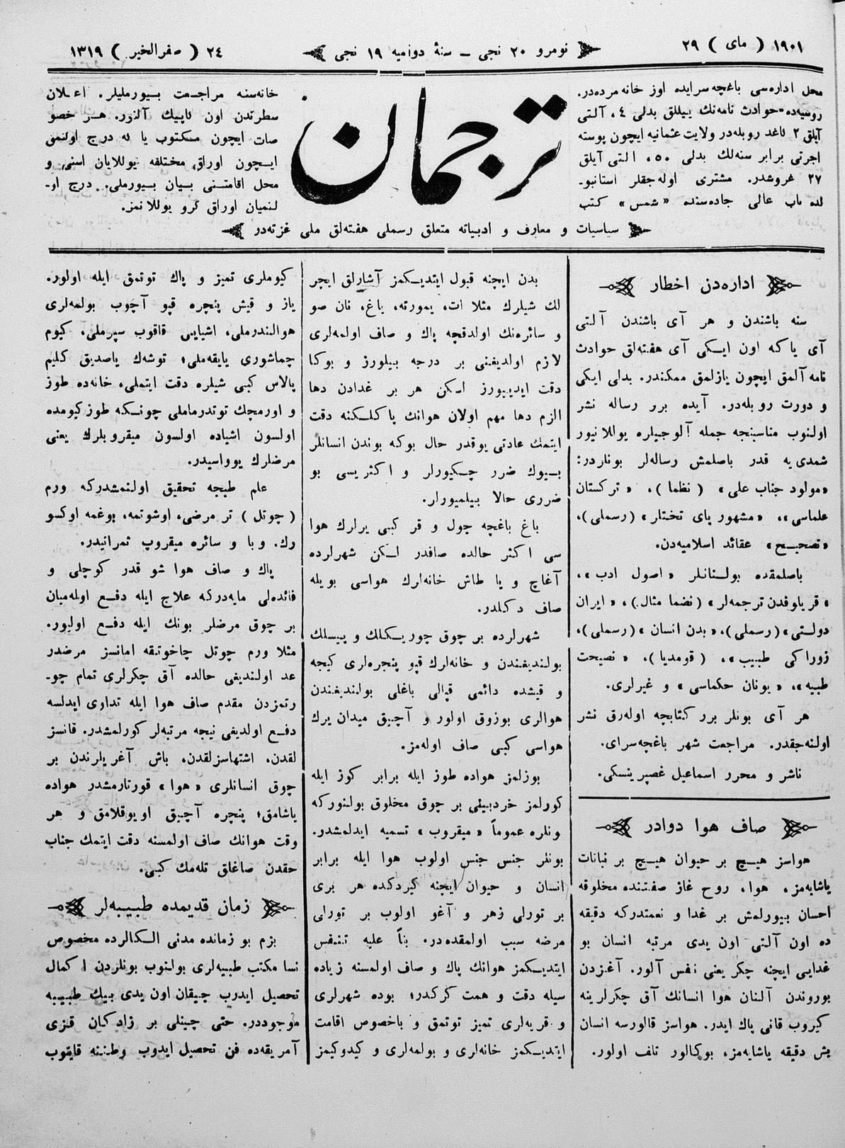 Tercüman, 29 May 1901 Year 19 No 20