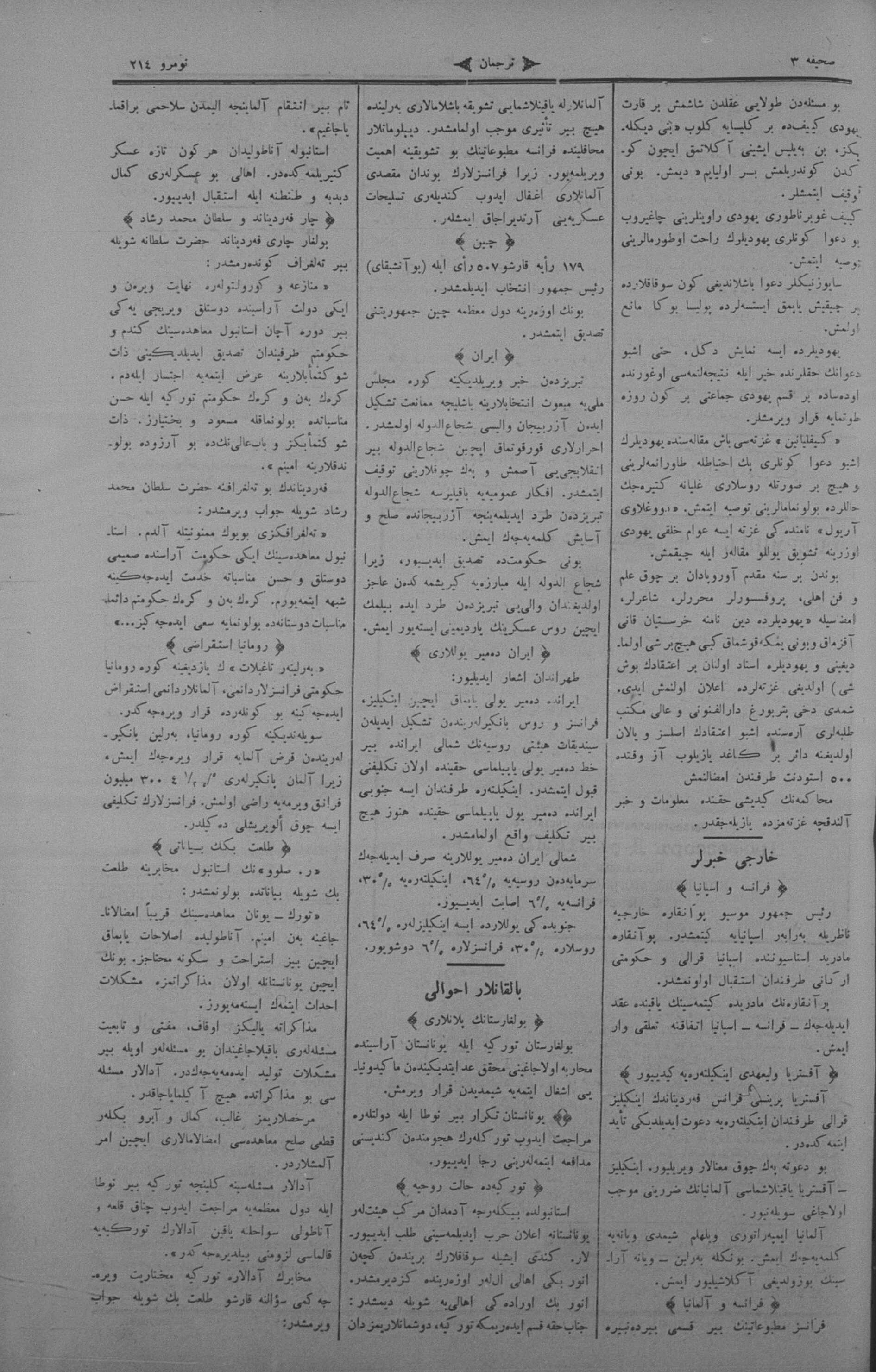 The name of the newspaper changed to Tercüman-ı Ahval-i Zaman in 1905. In 1909, it started to be published under its first name, Tercüman.