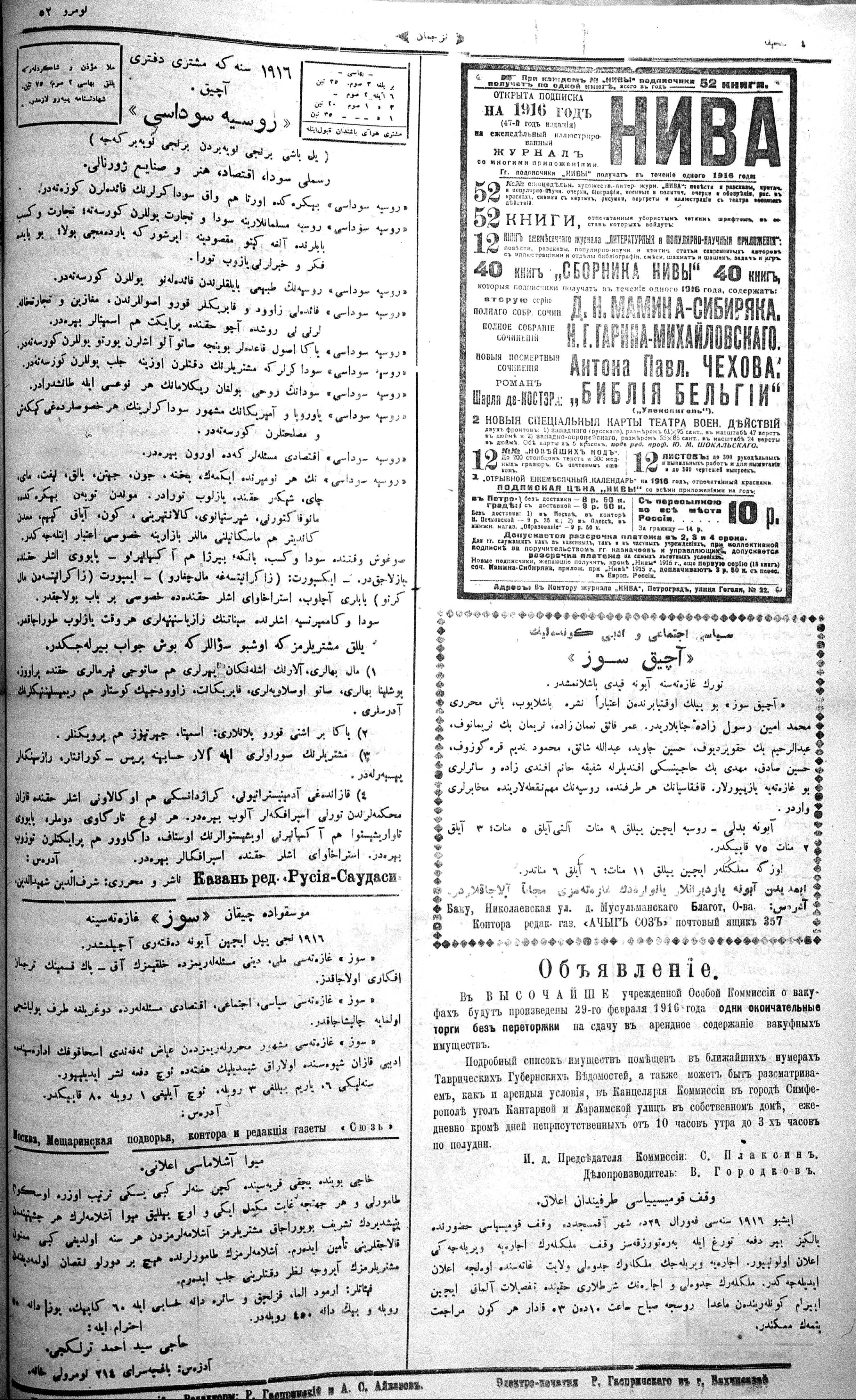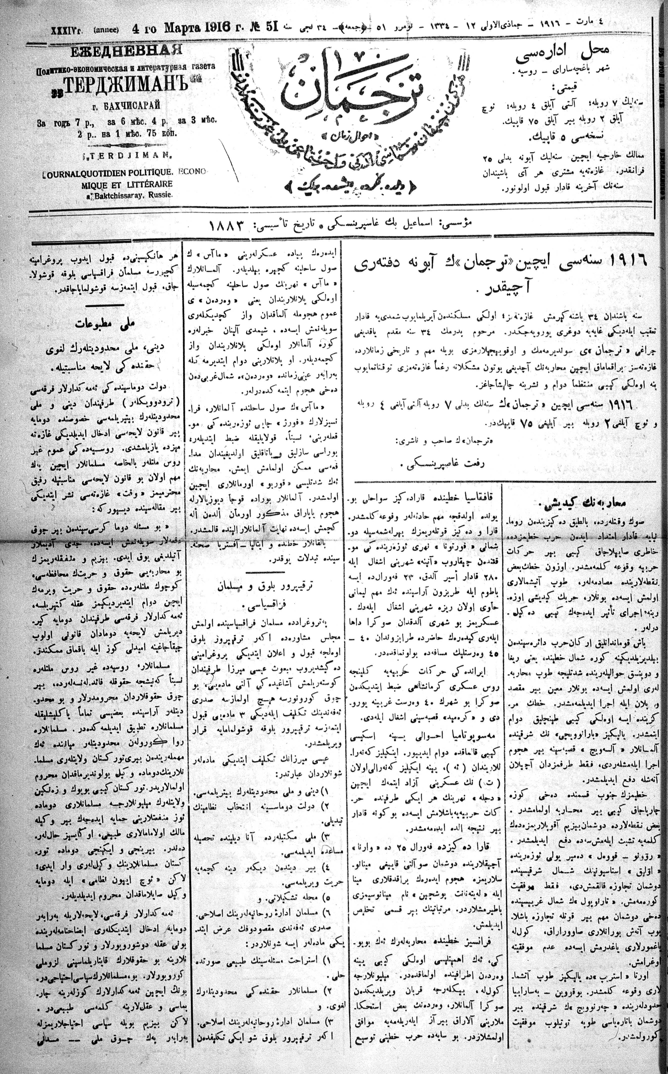 Turkish-Russian newspaper published in Crimea by İsmail Gaspıralı.