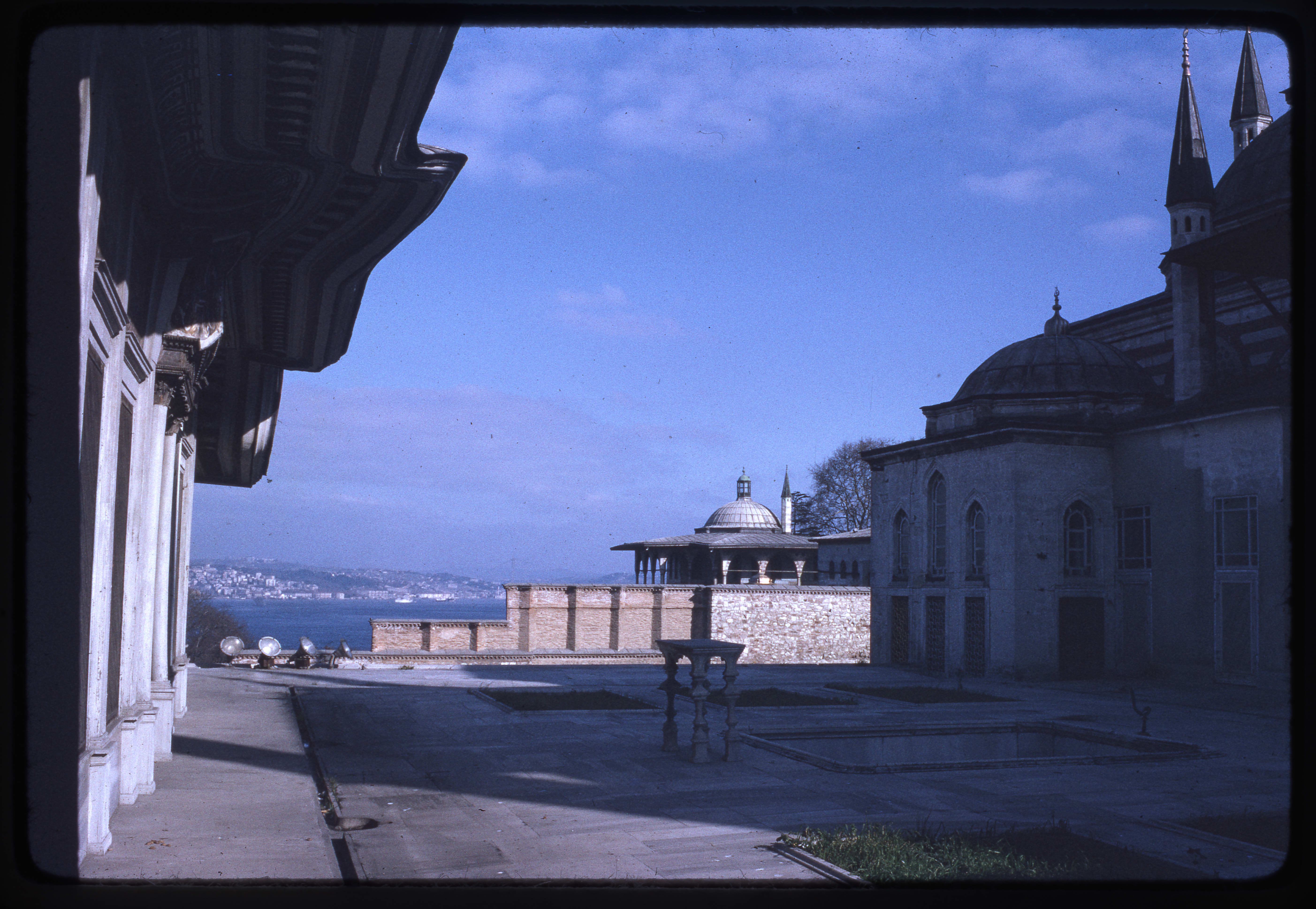 İstanbul-Topkapı Sarayı'nın Harem kısmında sağda III. Osman Köşkü, III. Ahmed Yemiş Odası ile solda I. Mahmud Kasrı'nın III. Osman Taşlığı'ndan görünüşü