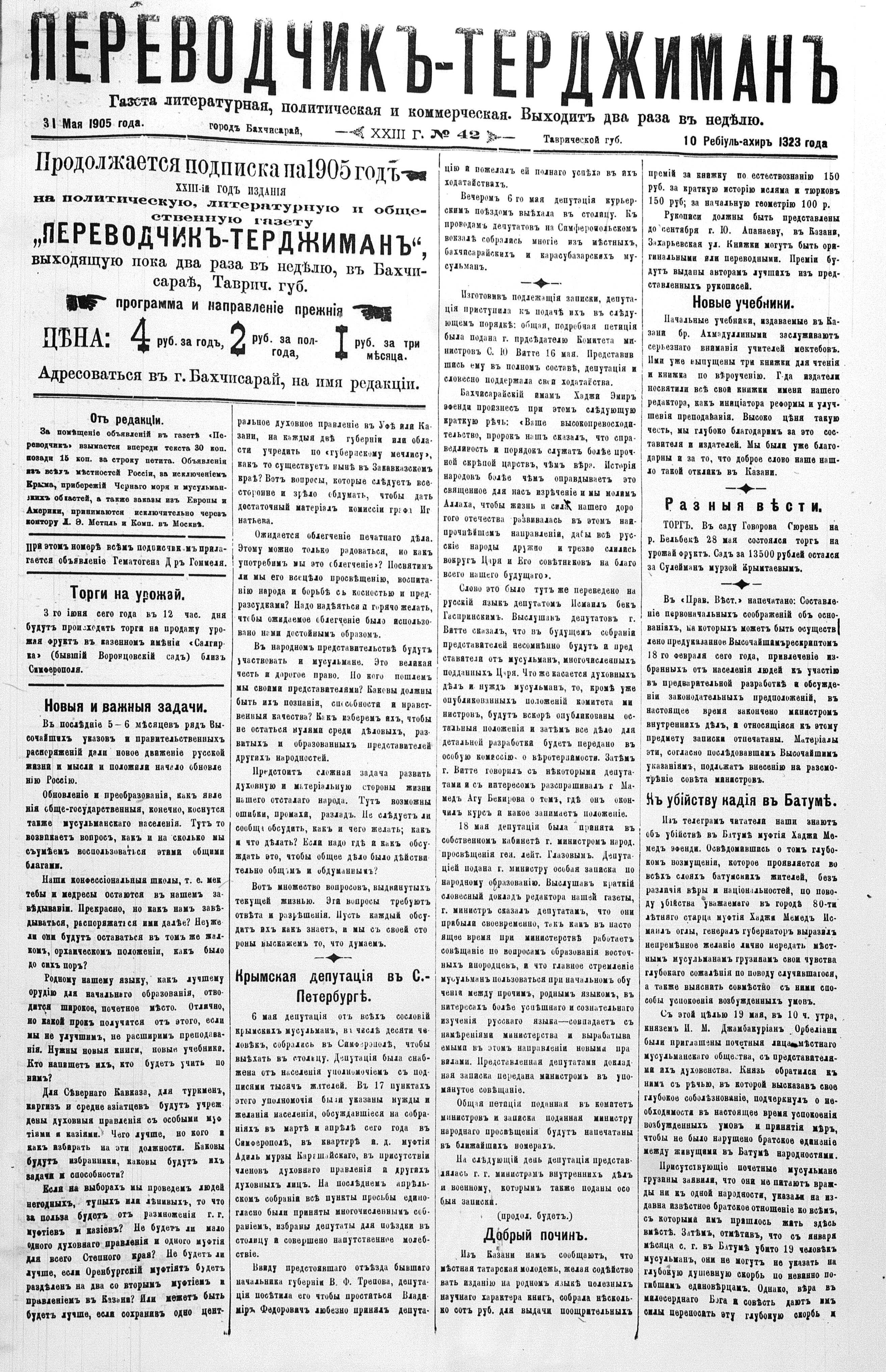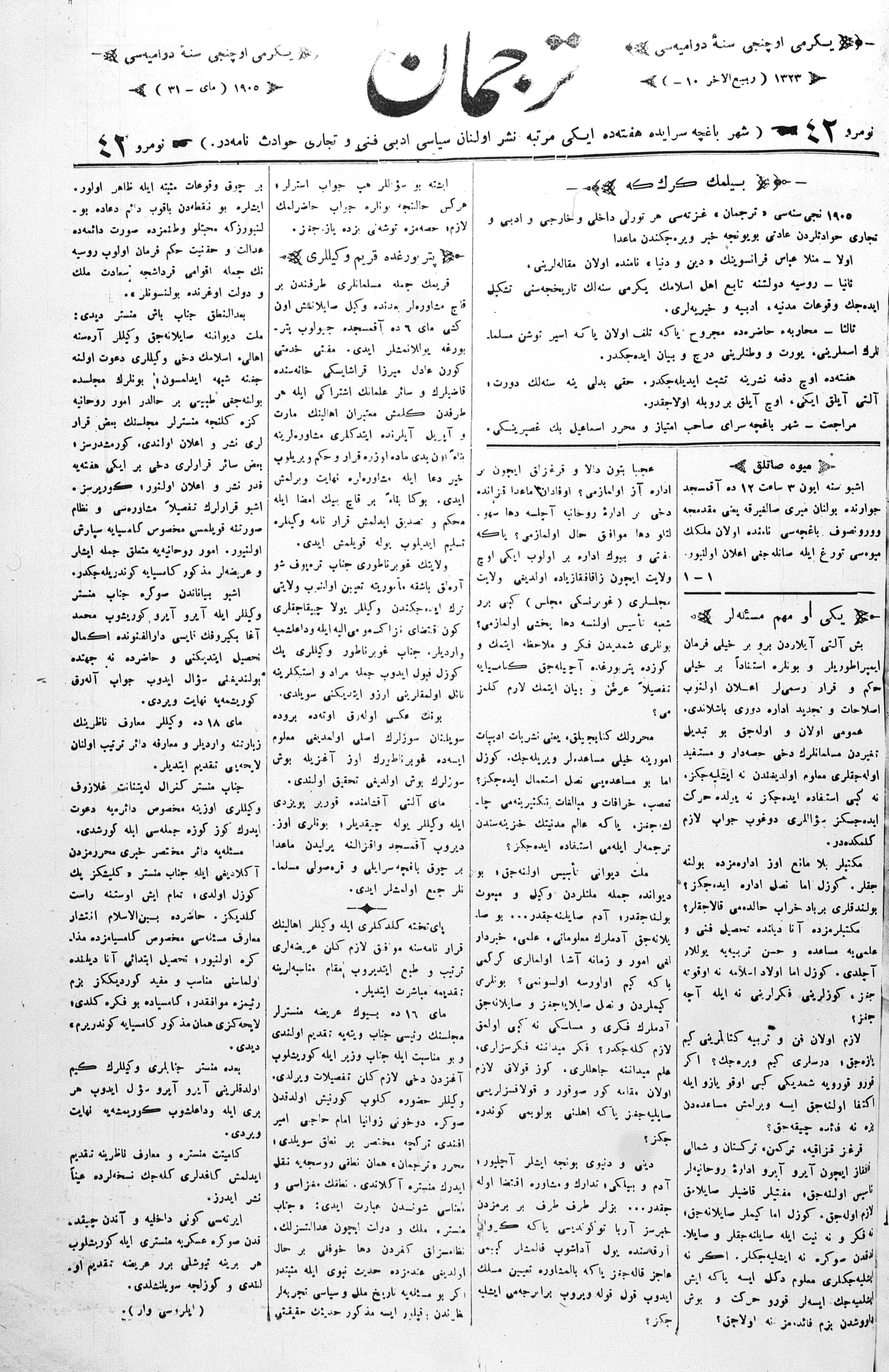Tercüman, 31 May 1905 Year 23 No 42