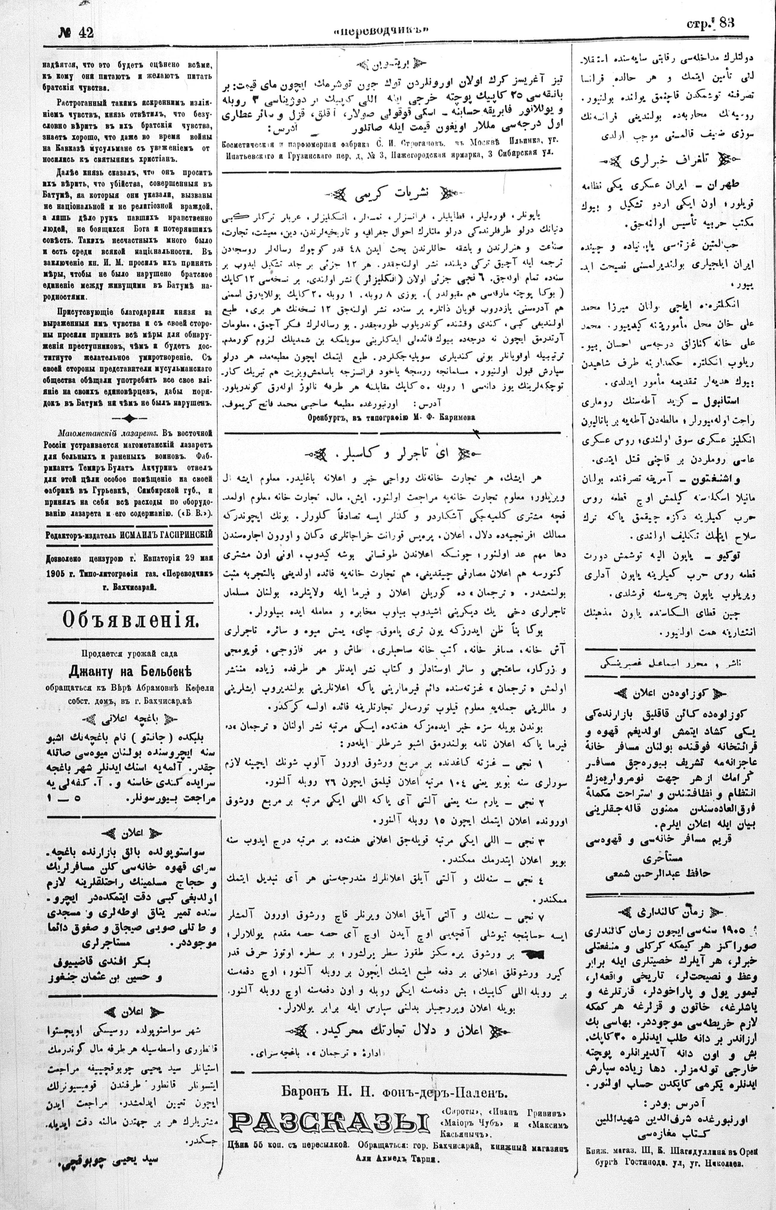 Turkish-Russian newspaper published in Crimea by İsmail Gaspıralı.