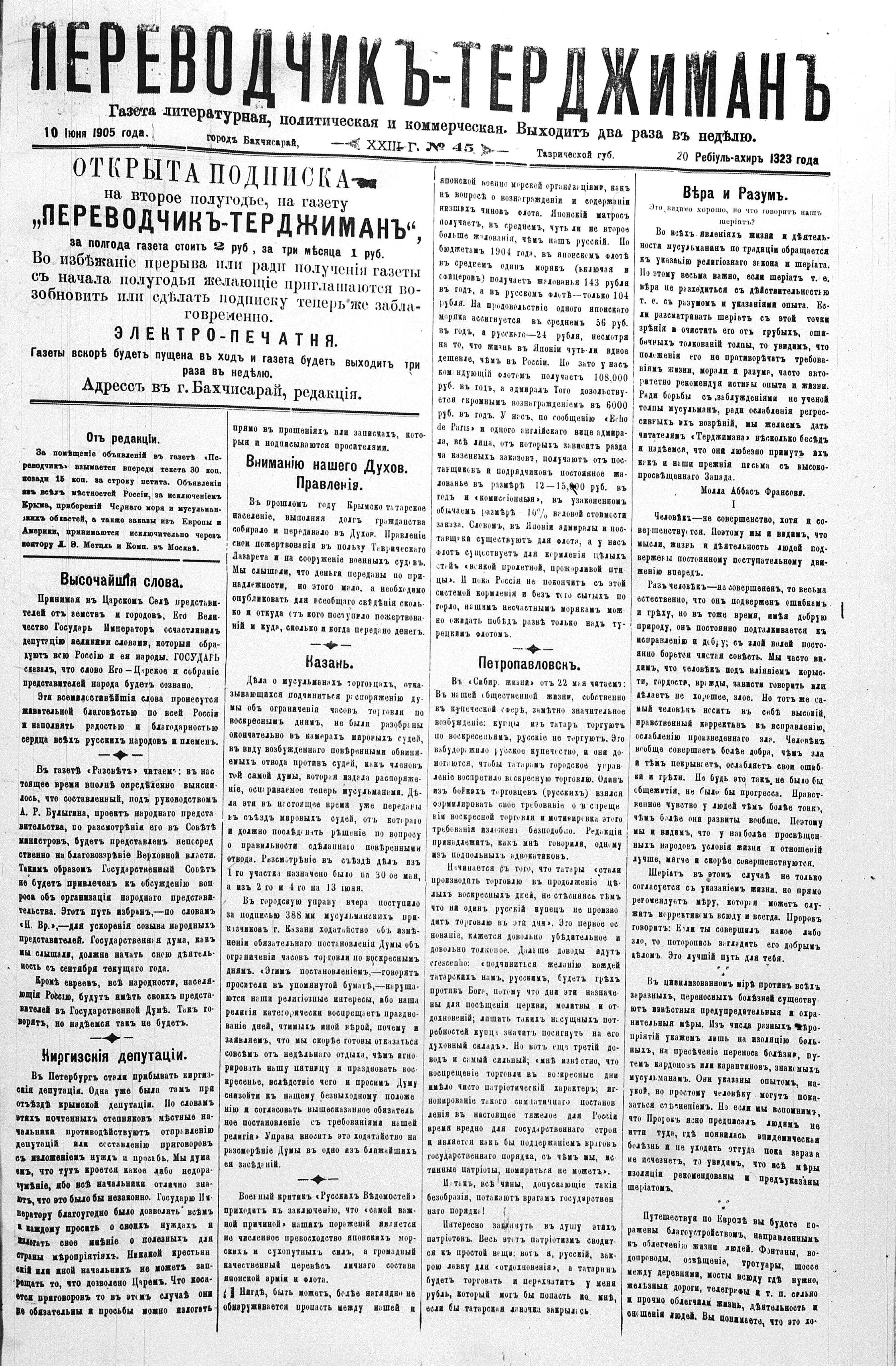 Tercüman, 10 June 1905 Year 23 No 45