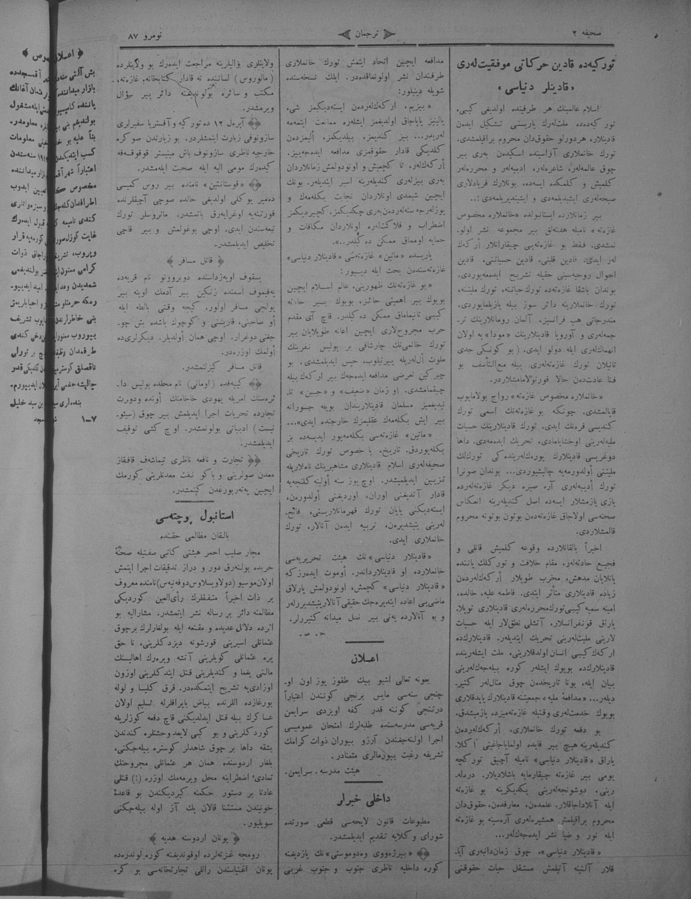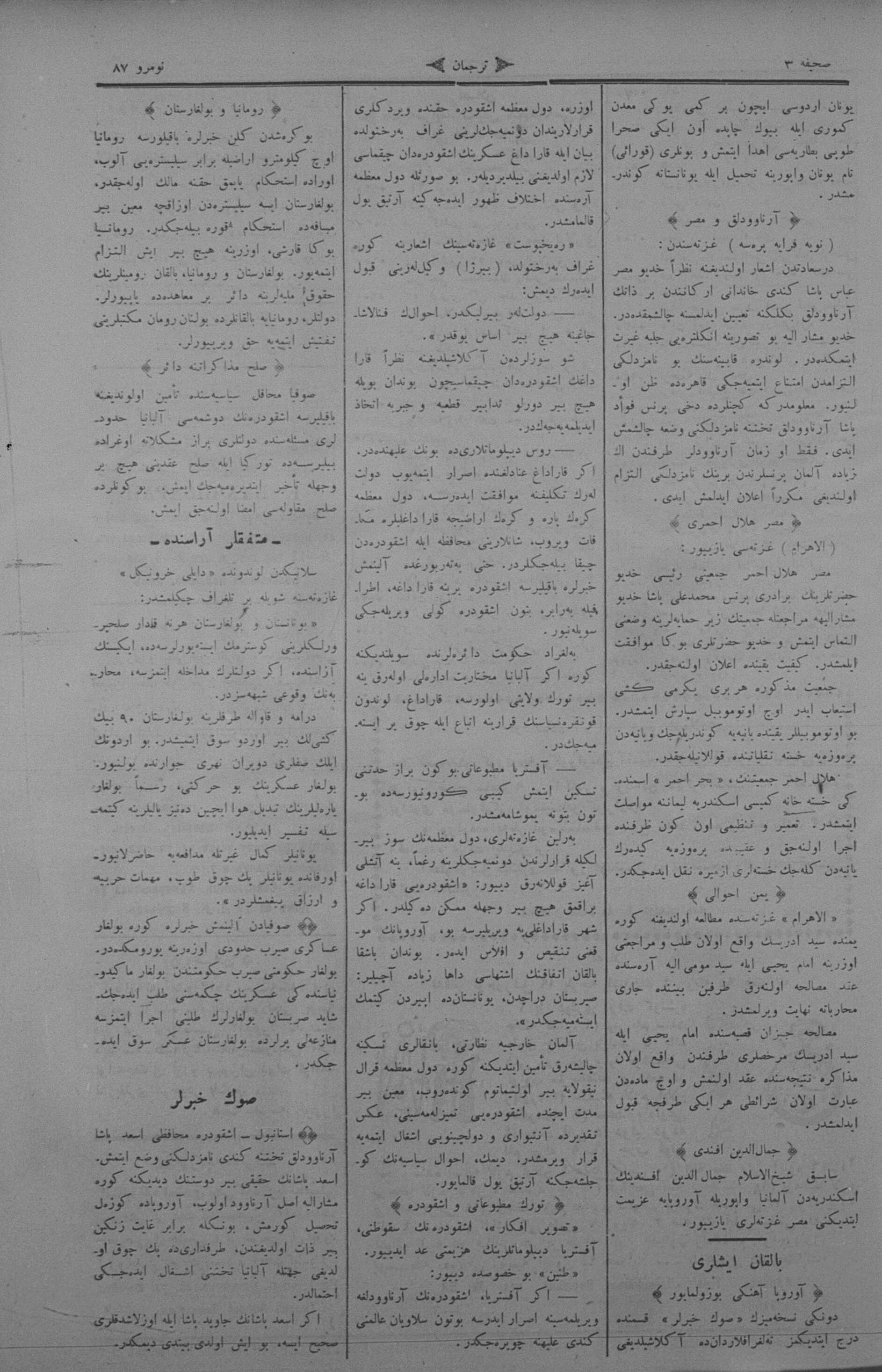 The name of the newspaper changed to Tercüman-ı Ahval-i Zaman in 1905. In 1909, it started to be published under its first name, Tercüman.