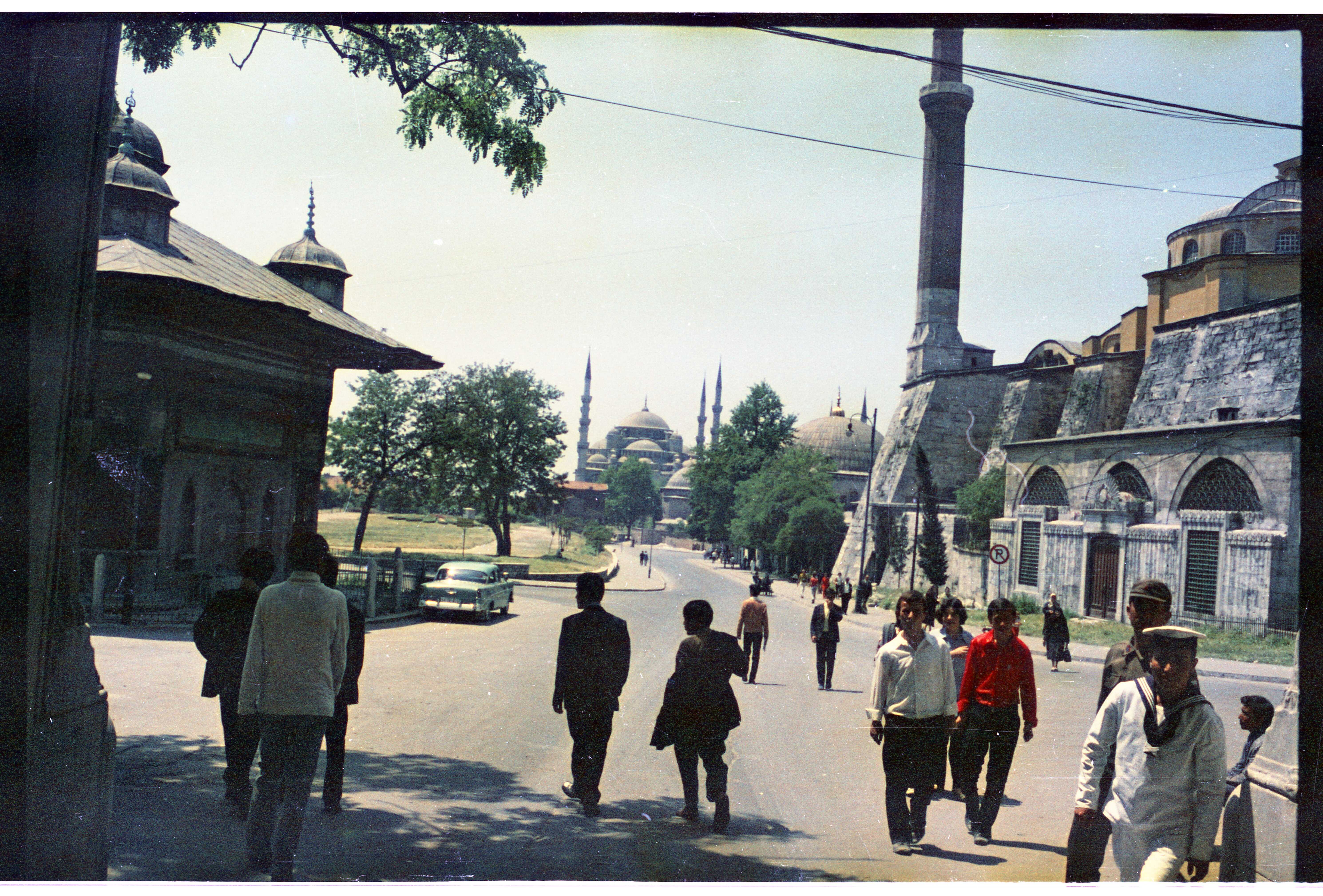 Topkapı Sarayı ana giriş kapısından Ayasofya Camii, Sultan Ahmet Camii ve III. Ahmed Çeşmesi'nin görünüşü