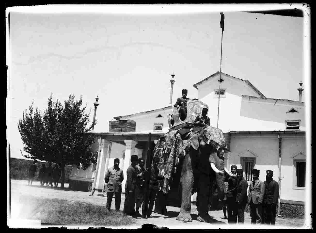 Türkiye'nin Kabil Büyükelçisi Fahreddin Paşa büyükelçilik bahçesinde fil üstünde