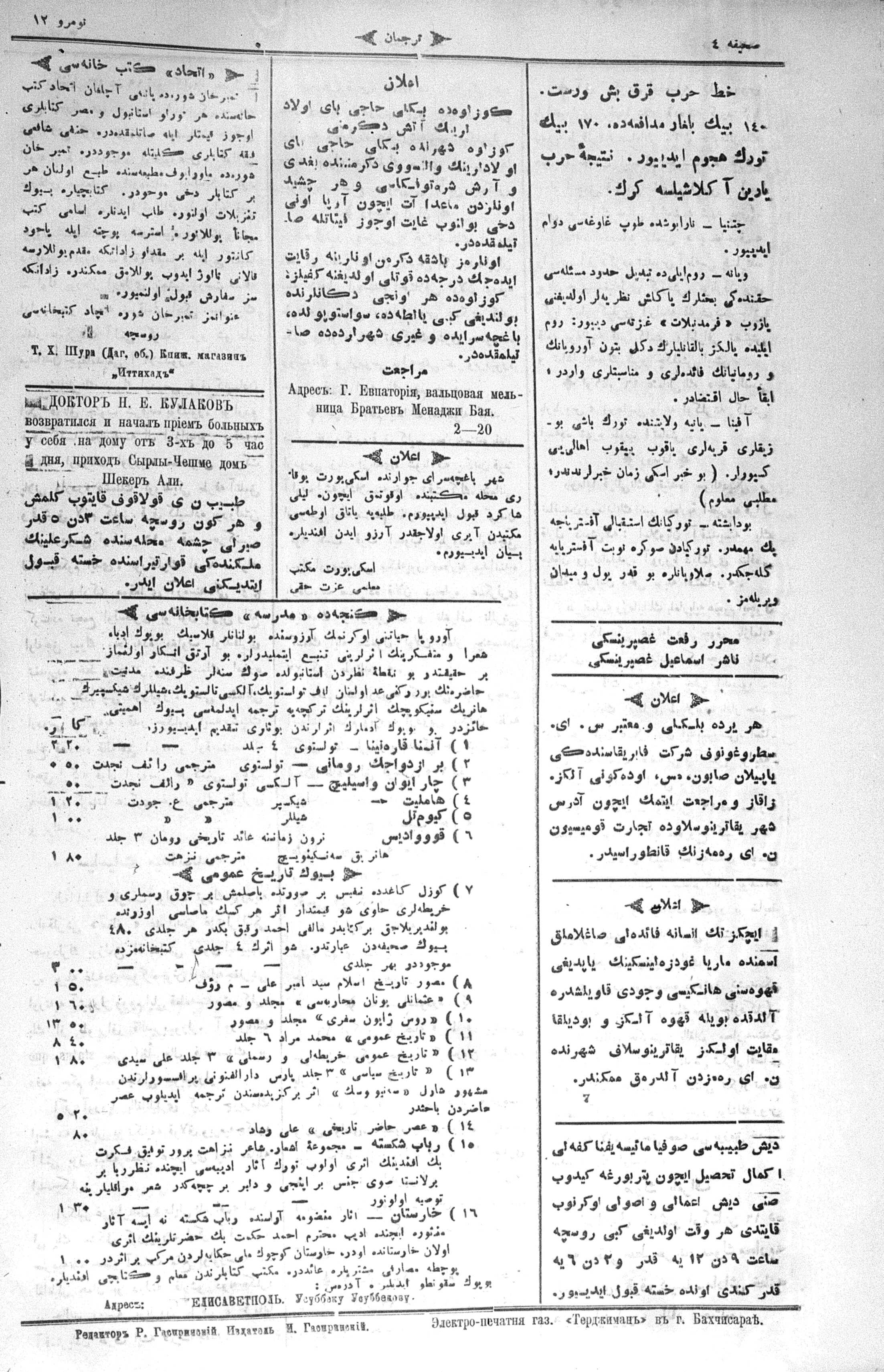 Turkish-Russian newspaper published in Crimea by İsmail Gaspıralı.