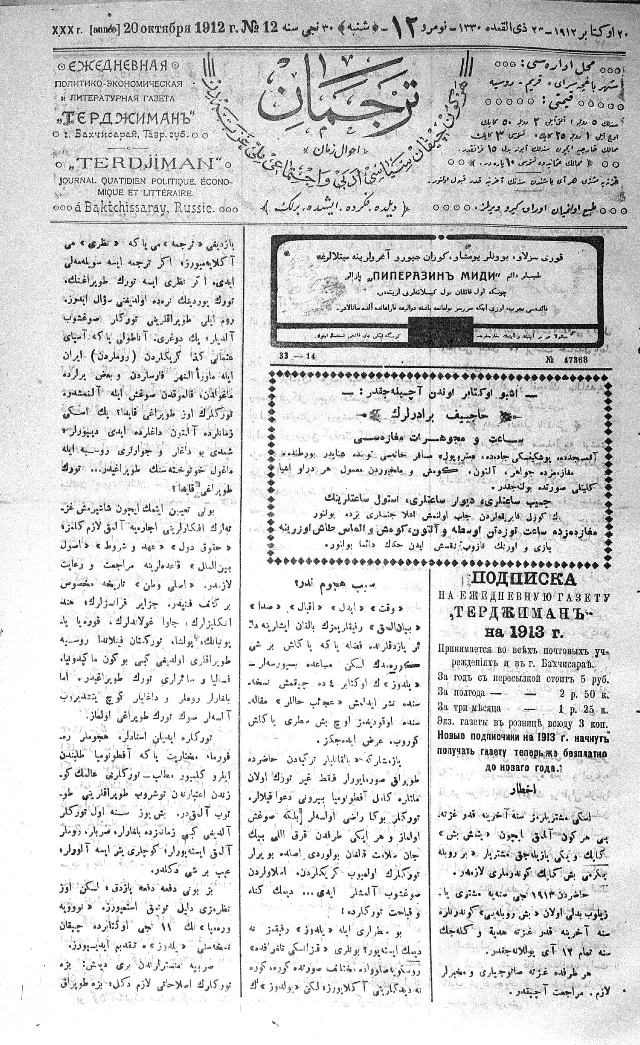 Tercüman, 20 October 1912 Year 30 No 12