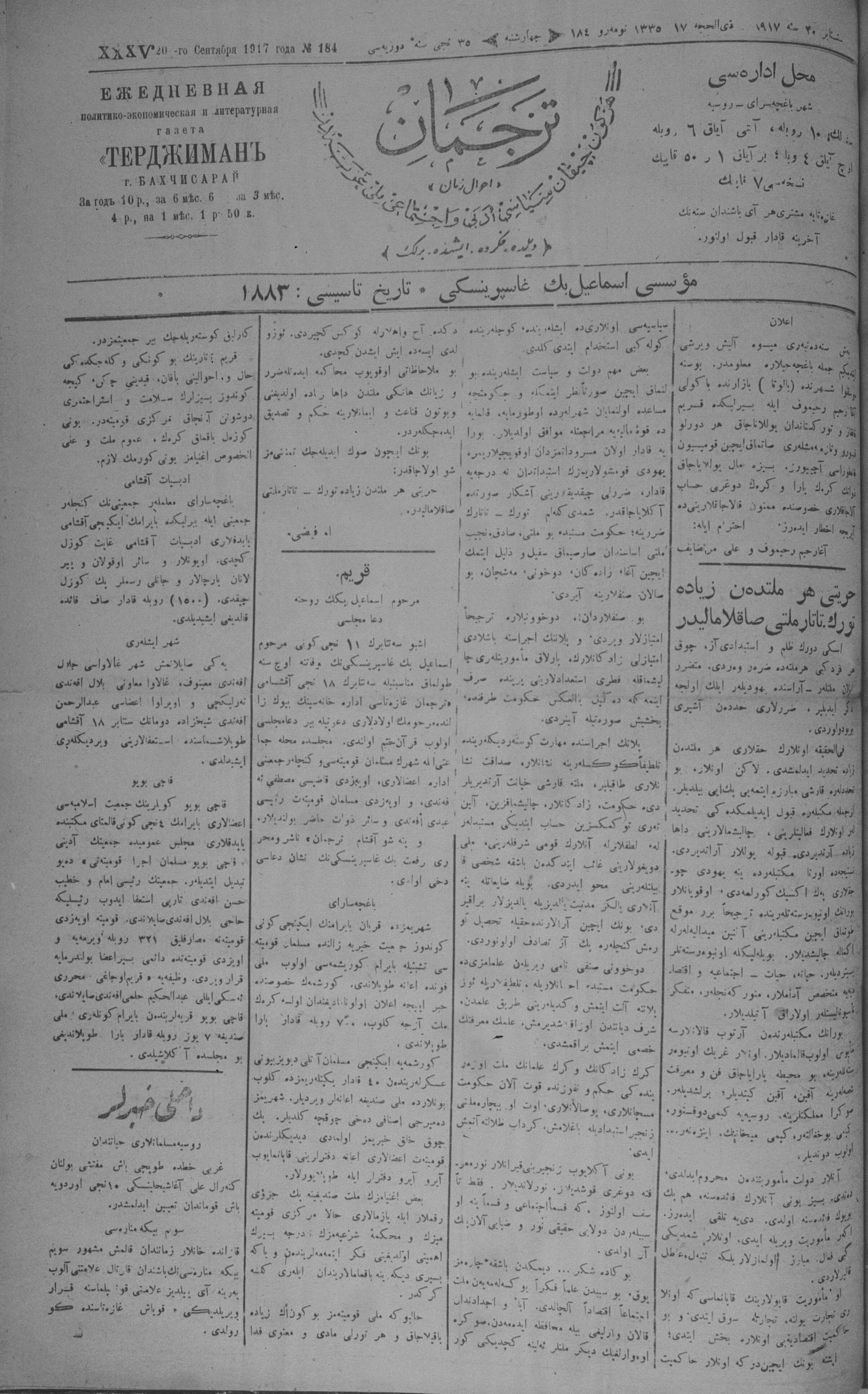 Turkish-Russian newspaper published in Crimea by İsmail Gaspıralı.