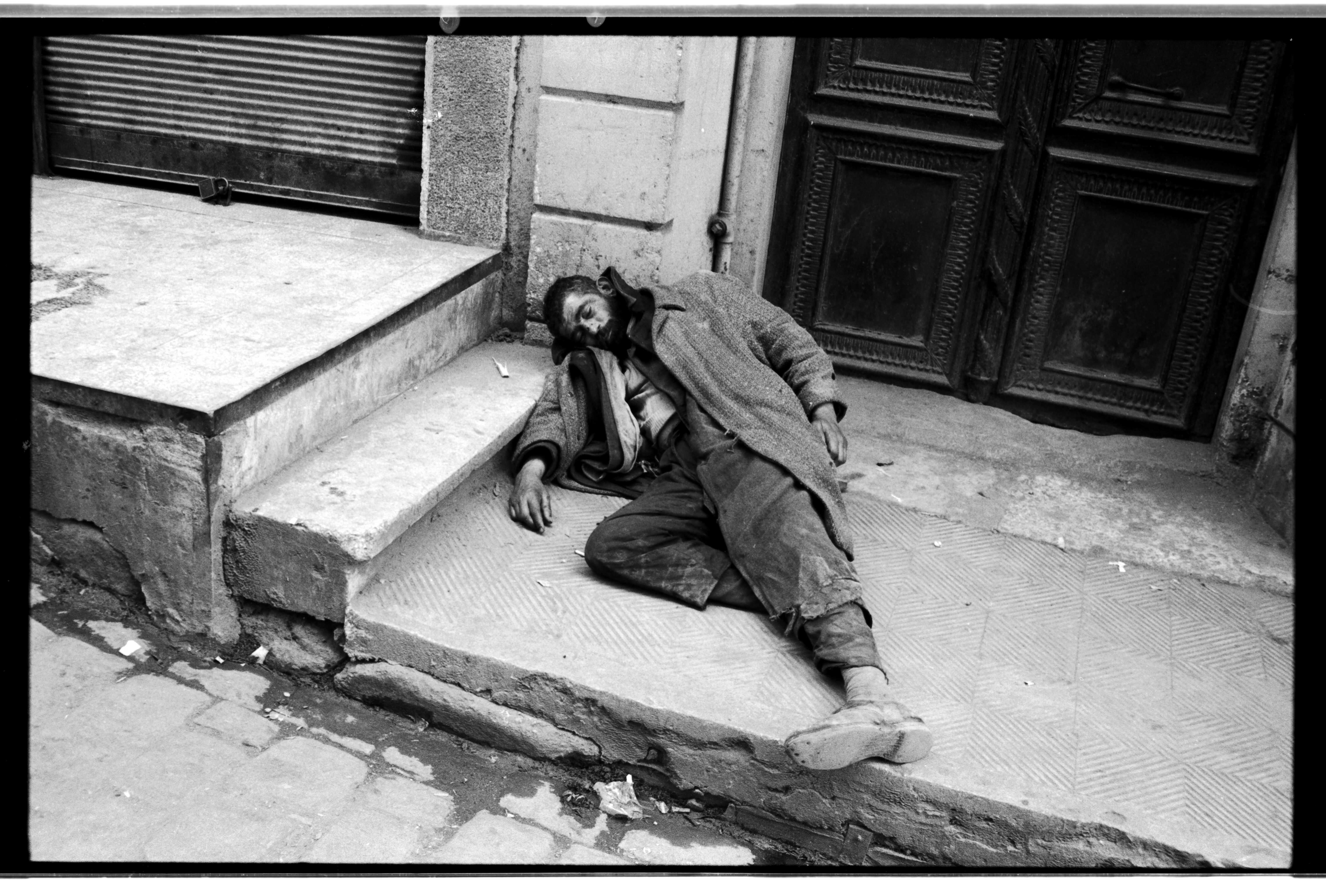 Yüksek Kaldırım Caddesi'nde kaldırımda uyuyan evsiz bir adam