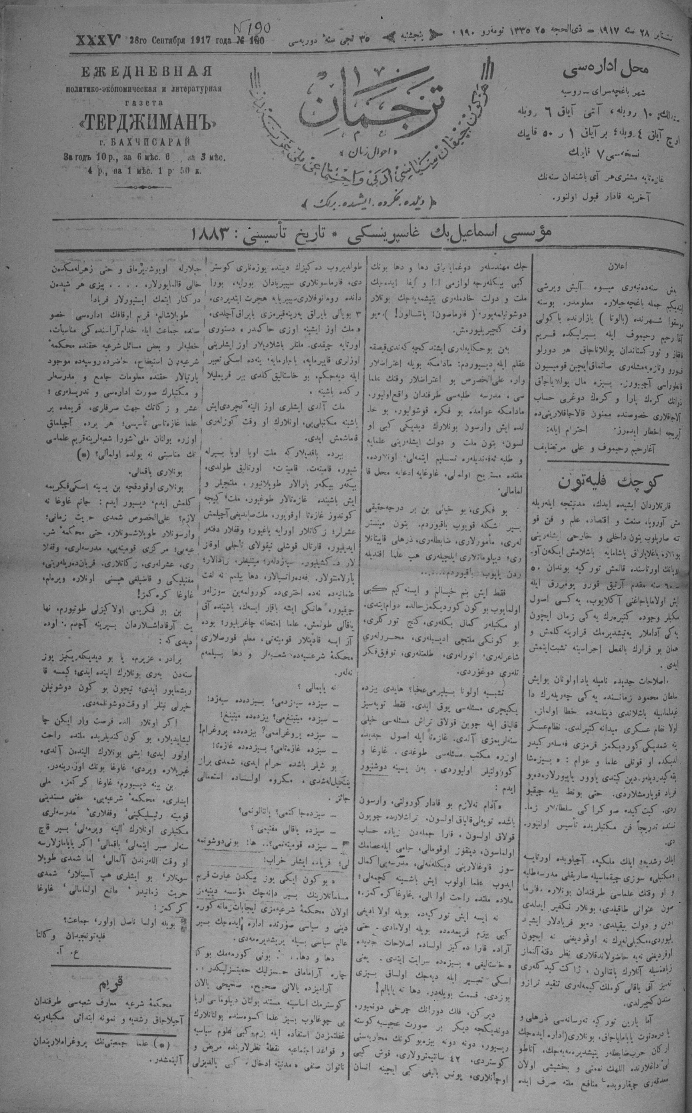Tercüman, 28 September 1917 Year 35 No 190