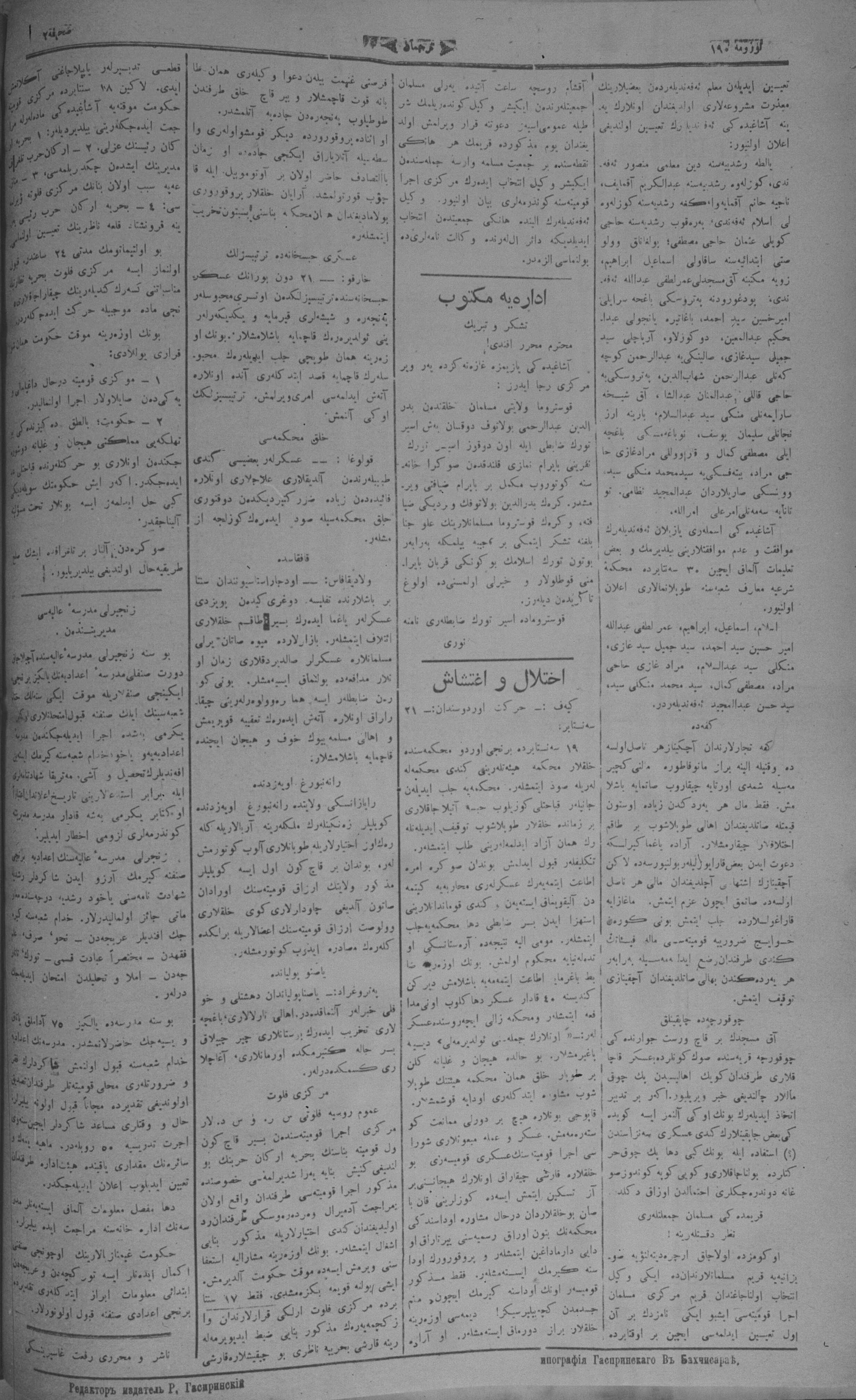 Turkish-Russian newspaper published in Crimea by İsmail Gaspıralı.