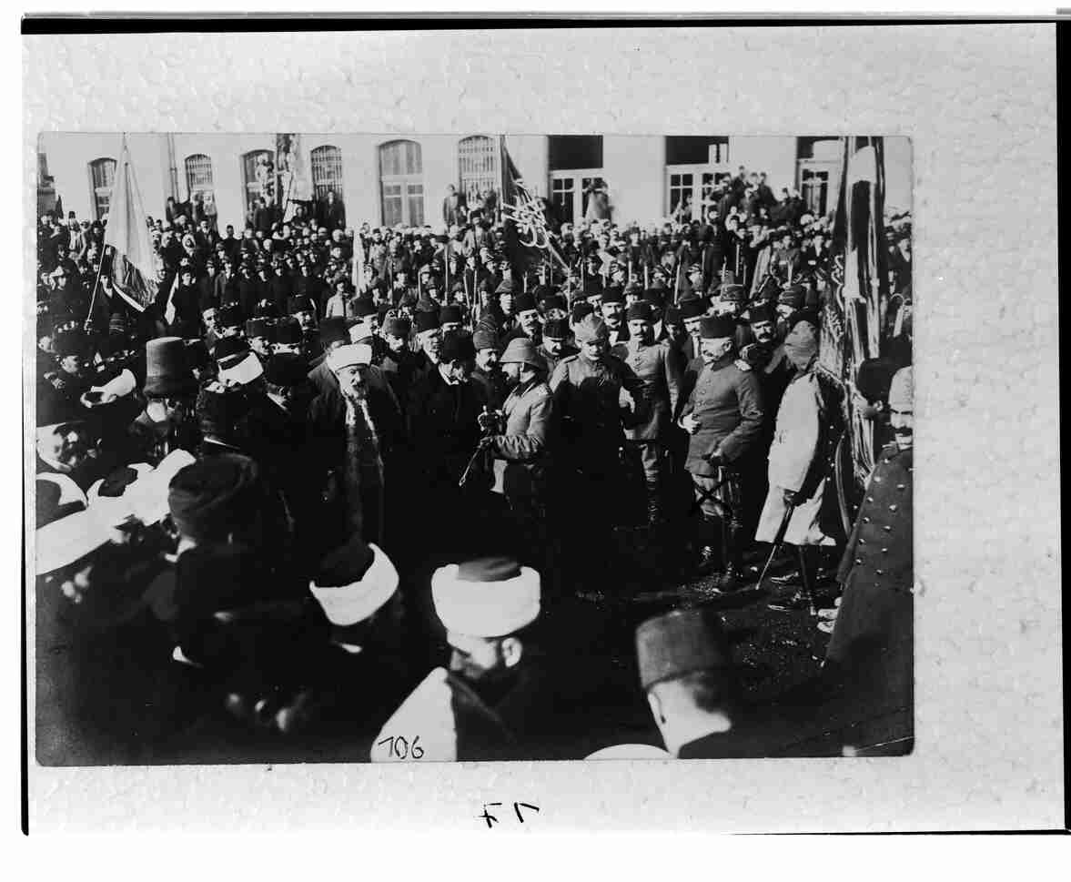 Cemal Paşa, Trommer Paşa ve Fahreddin Paşa Şam'da 4. Ordu Merkezi'ndeki bir törende