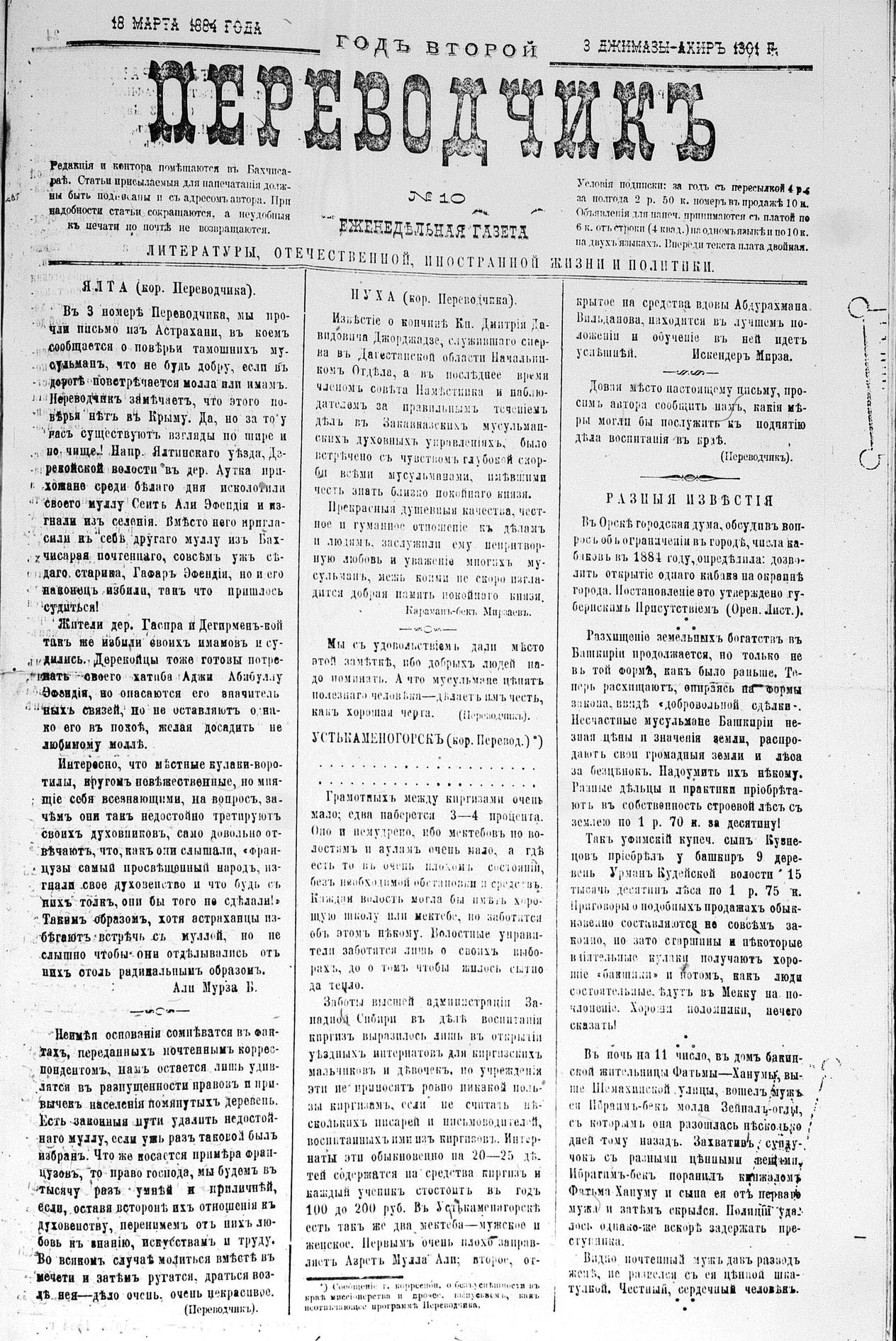 Turkish-Russian newspaper published in Crimea by İsmail Gaspıralı.