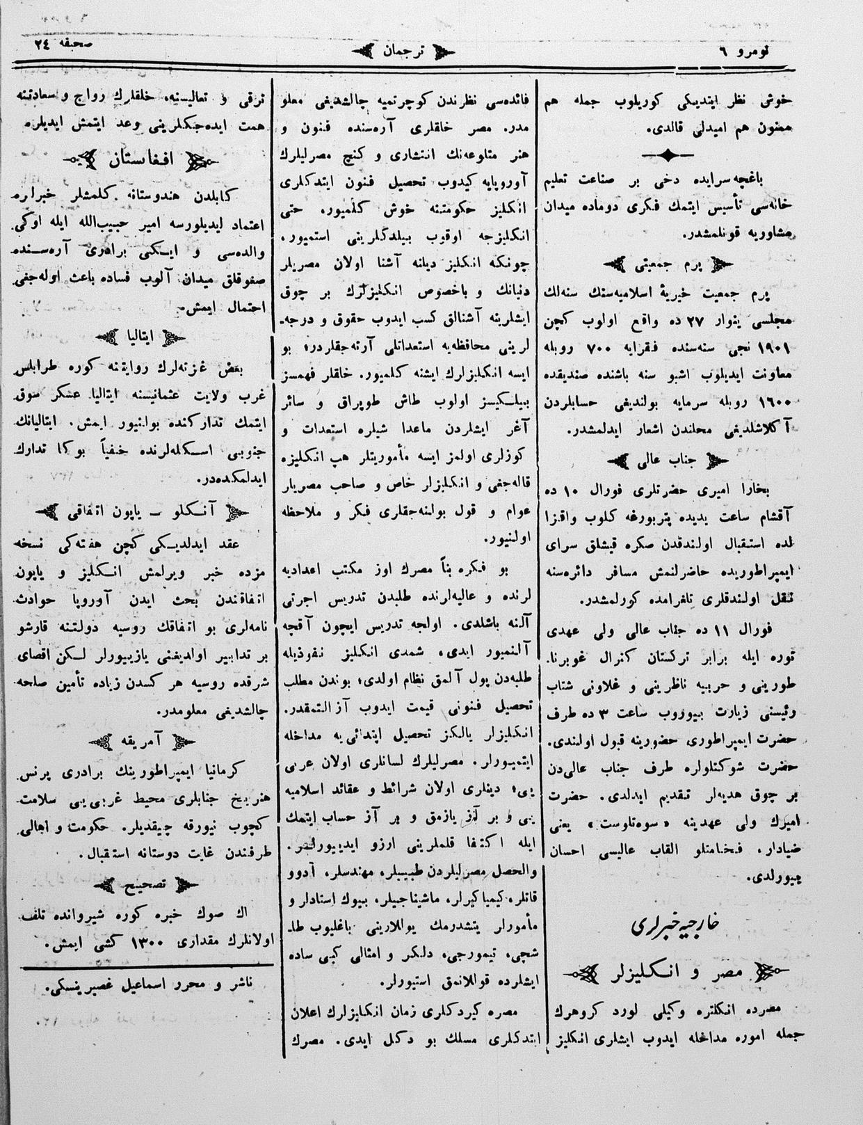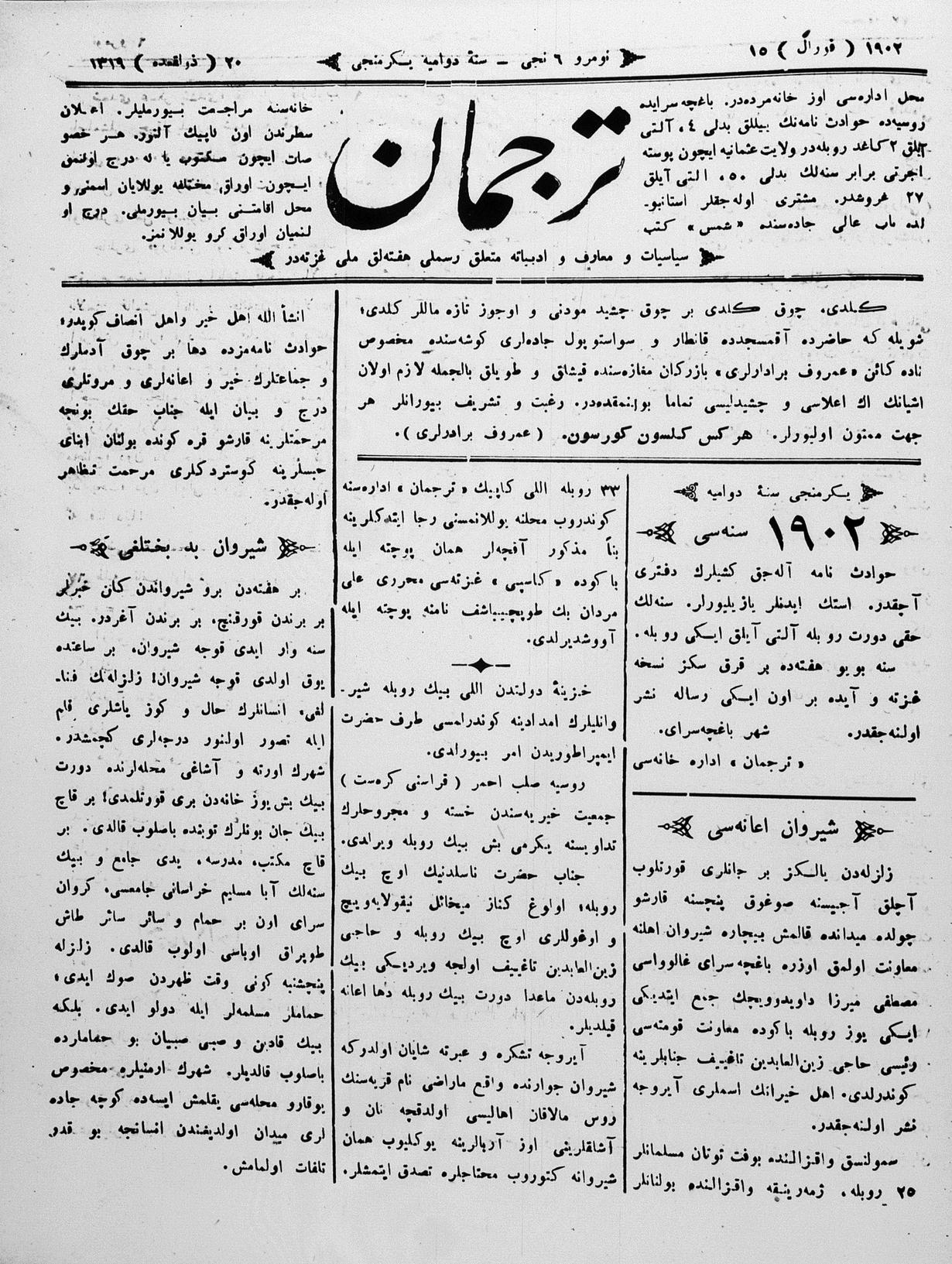 The name of the newspaper changed to Tercüman-ı Ahval-i Zaman in 1905. In 1909, it started to be published under its first name, Tercüman.