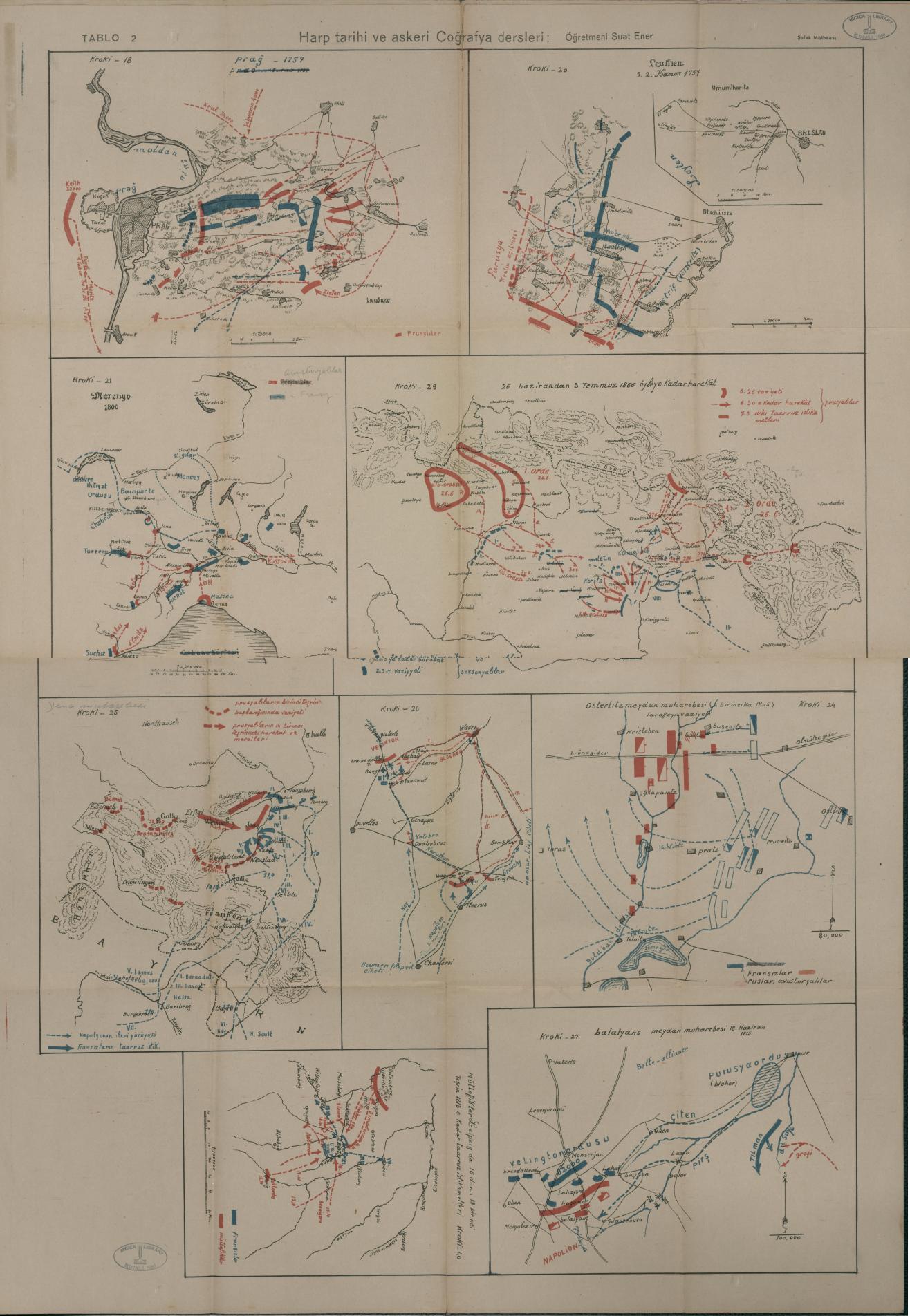 With: Kroki-18: Prag, Scale 1:15,000.-Kroki-20: Zeufhen, Scale 1:75,000.- Kroki-21: Dlarengo, Scale 1:2,500,000.- Kroki-24: Osterlitz Meydan Muharebesi, Scale 1:80,000.- Kroki-25: Nordhausen.- Kroki-26.- Kroki-27: Balatyans Meydan Muharebesi, Scale 1:100,000.- Kroki-29.- Kroki-40: Müttefikler Leipzig da 16 dan 18 birinci Teşrin 1813 e kadar taarruz istikametleri, Scale 1:1,000,000.