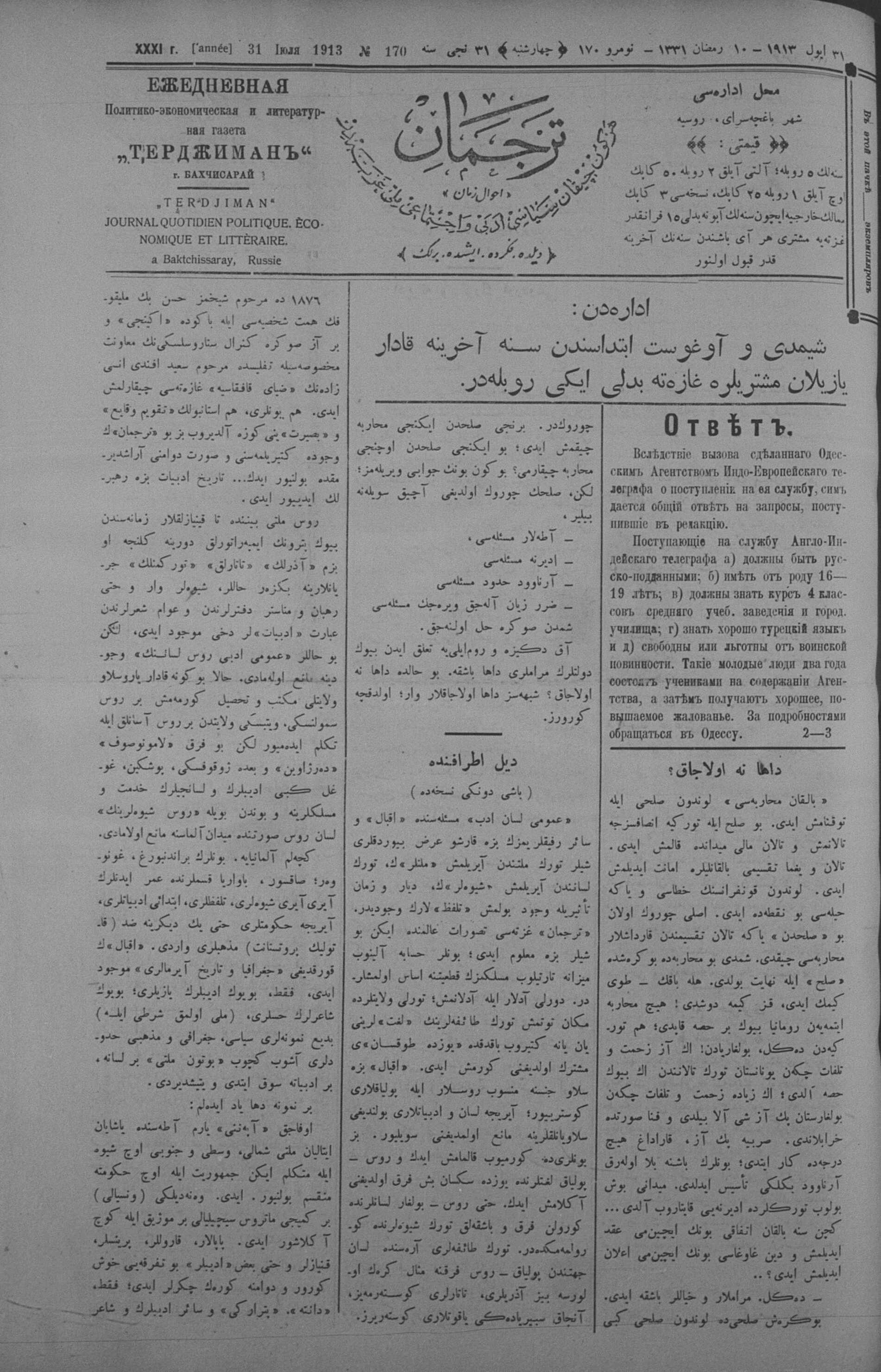 Turkish-Russian newspaper published in Crimea by İsmail Gaspıralı.