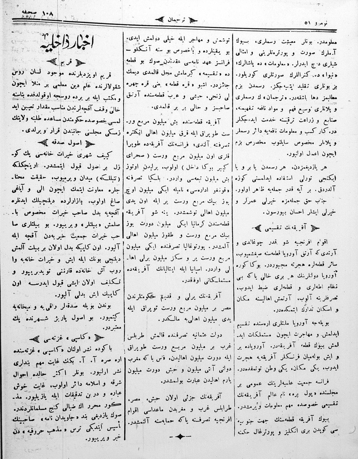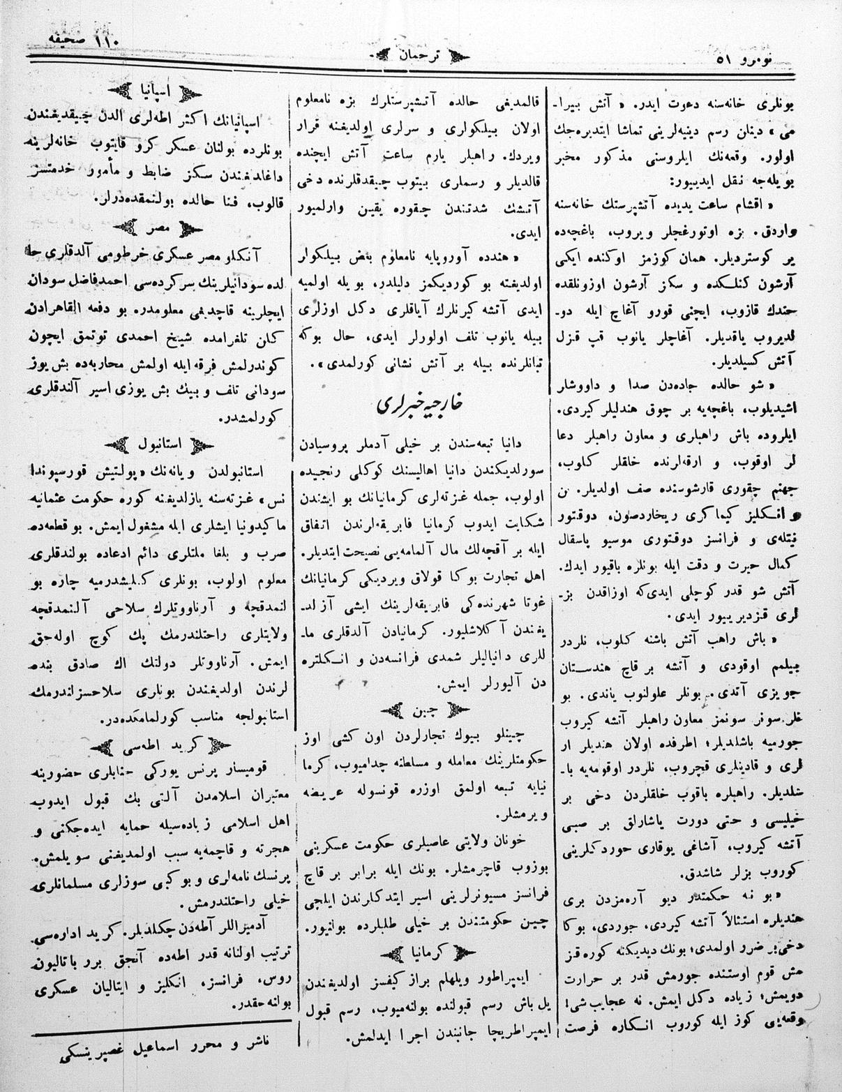 The name of the newspaper changed to Tercüman-ı Ahval-i Zaman in 1905. In 1909, it started to be published under its first name, Tercüman.