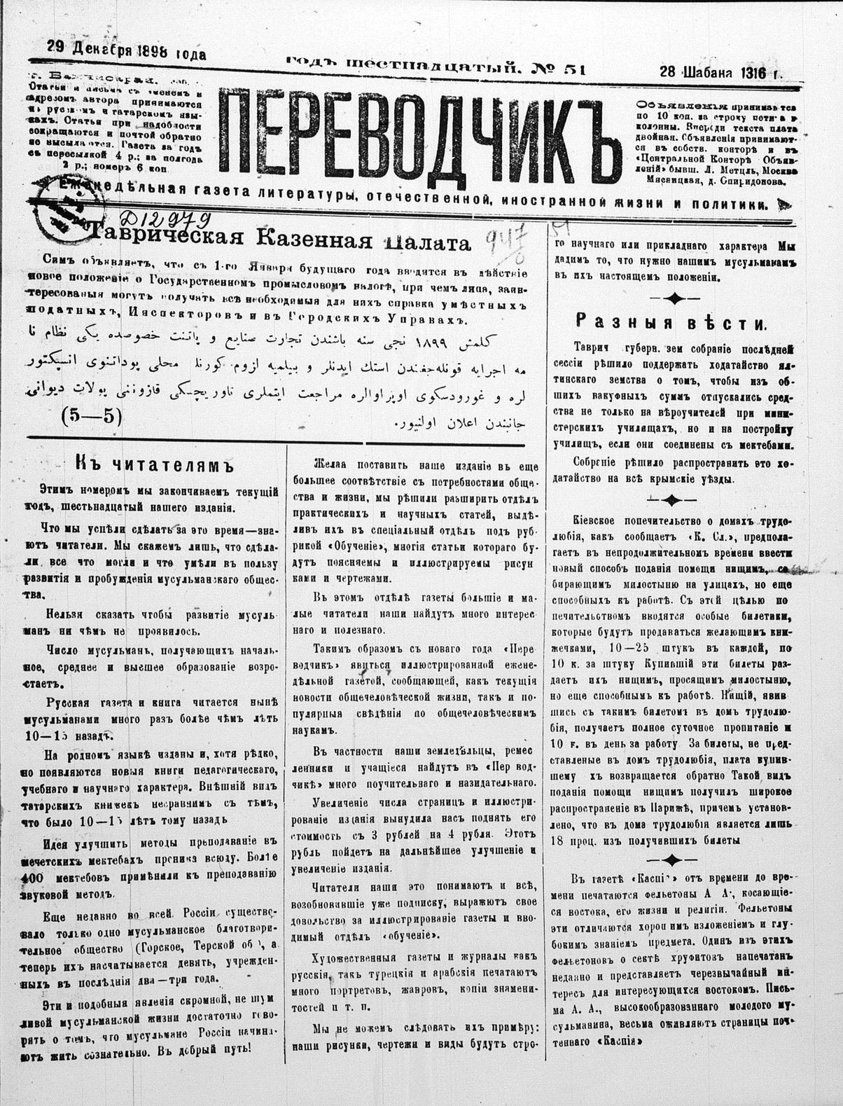 Turkish-Russian newspaper published in Crimea by İsmail Gaspıralı.