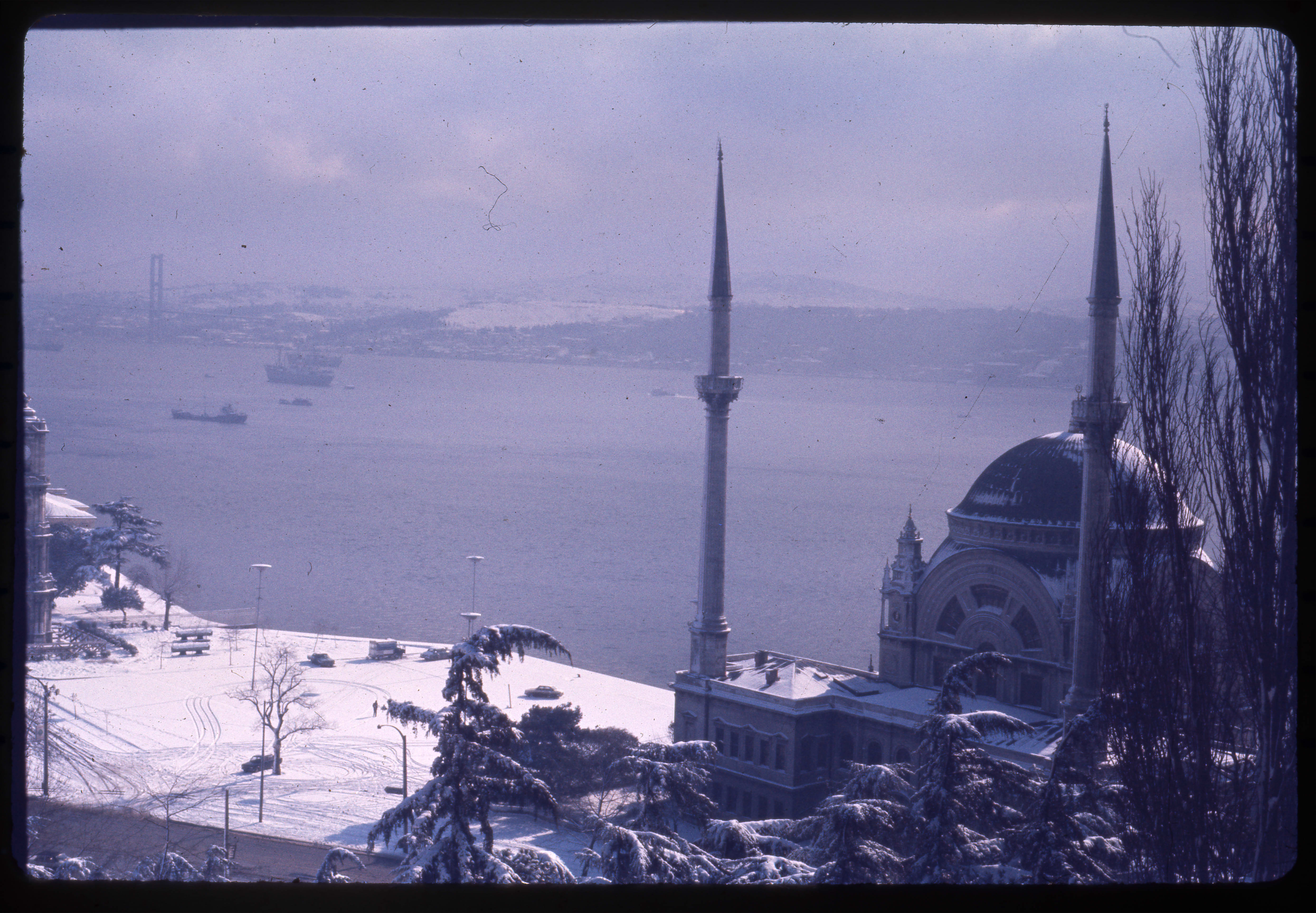 İstanbul-Karlı havada Dolmabahçe Camii ve Boğaz'ın görünüşü