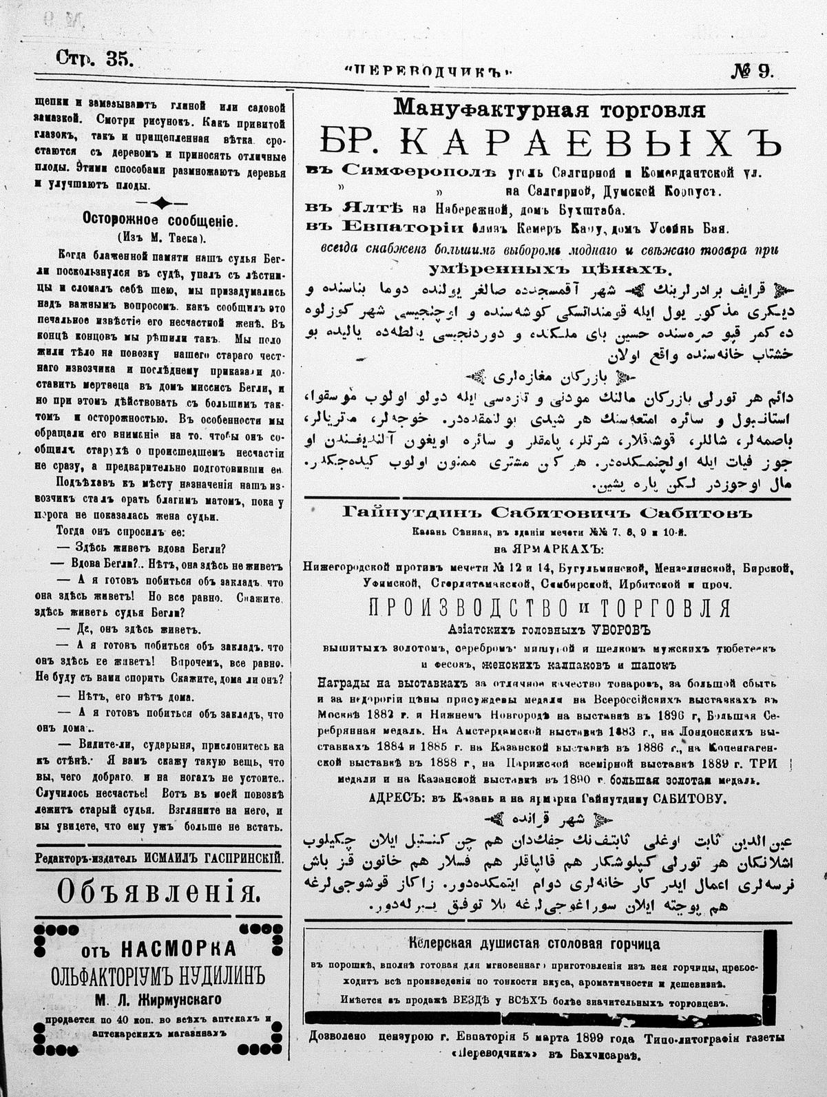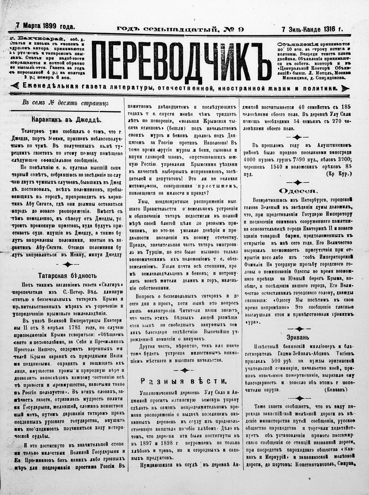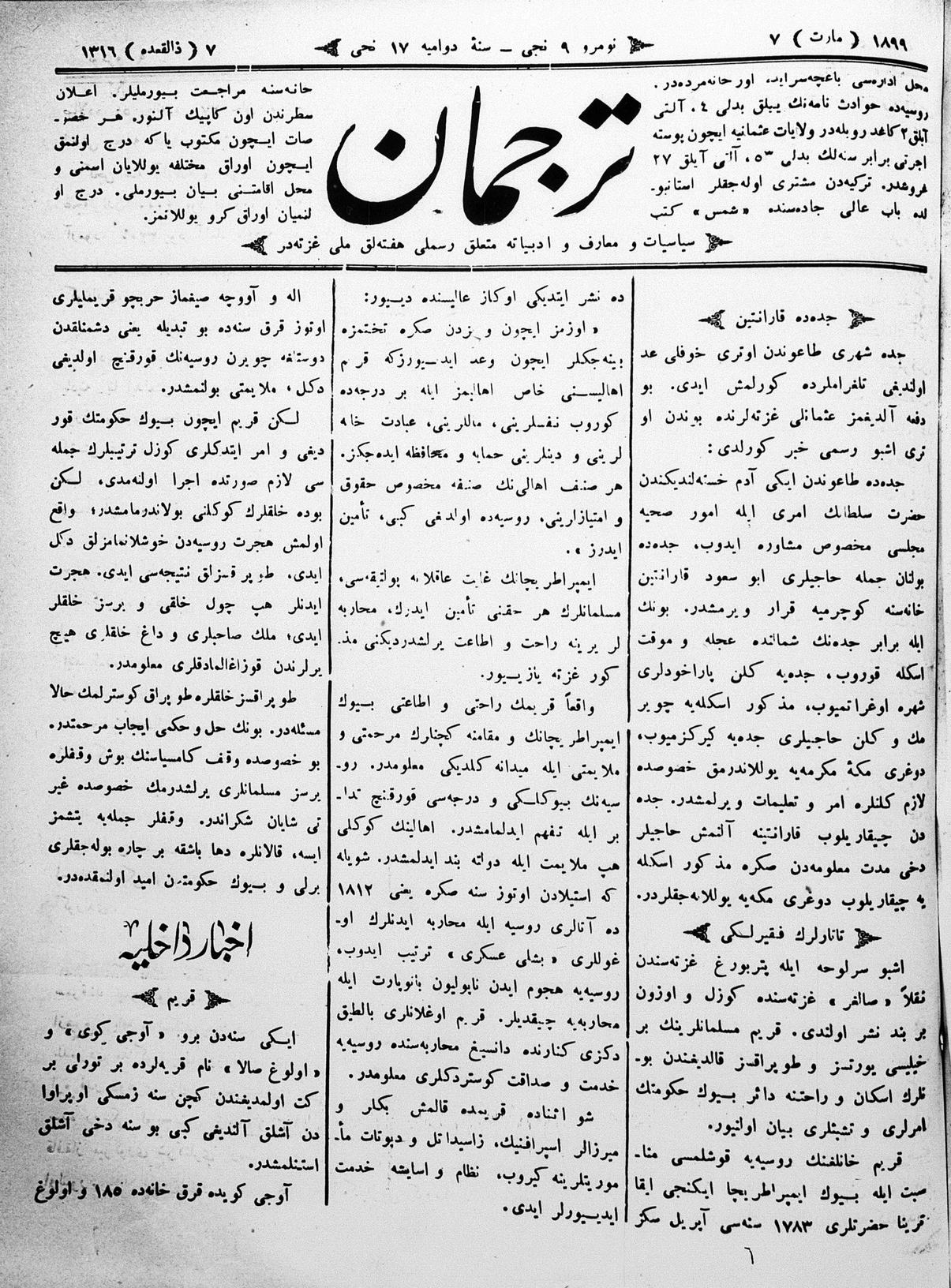 Turkish-Russian newspaper published in Crimea by İsmail Gaspıralı.