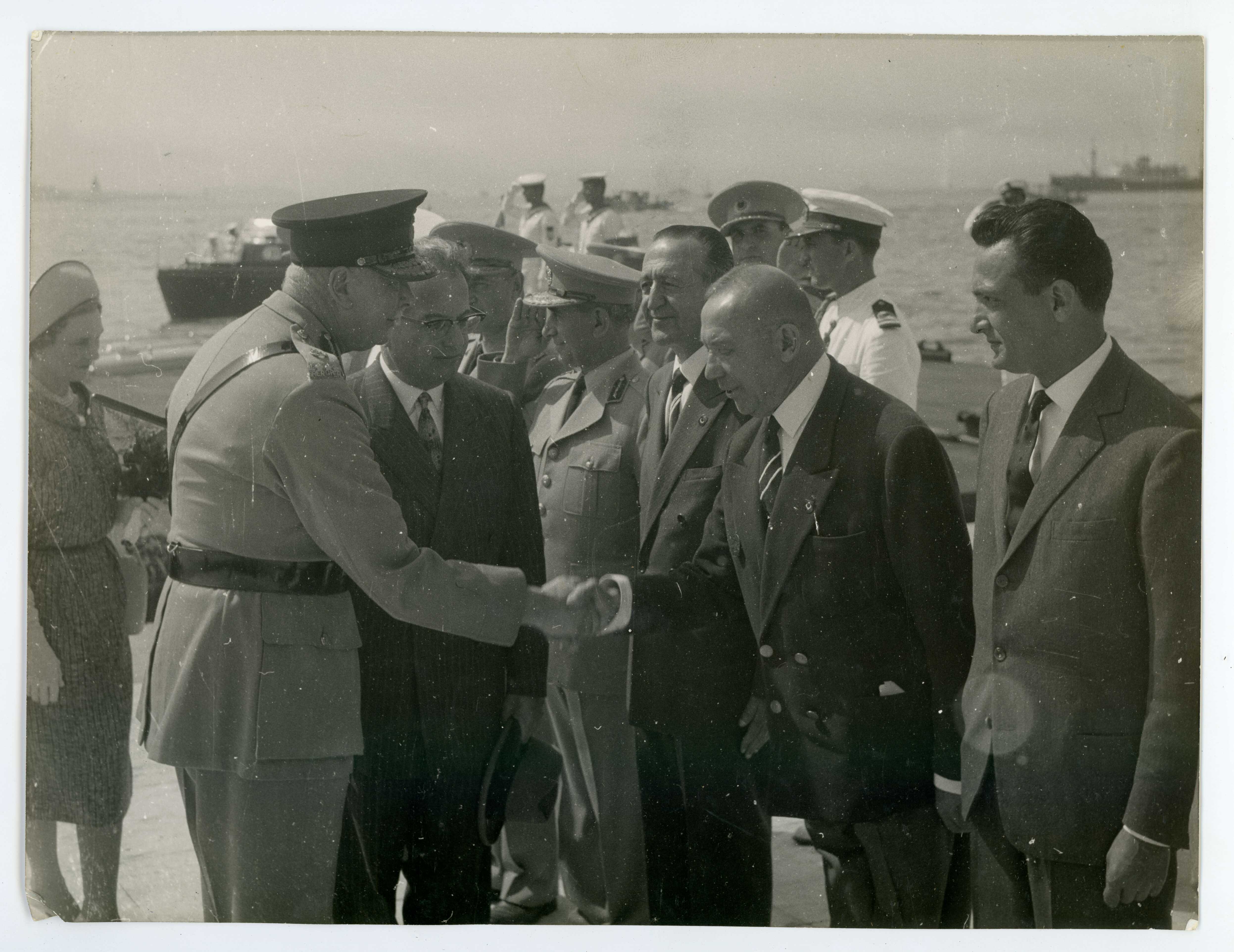 Gloucester Dükü ve eşinin Dolmabahçe rıhtımında karşılanmasında Eski Muharipler Protokol Müdürü sıfatıyla Ekrem Rüştü Akömer