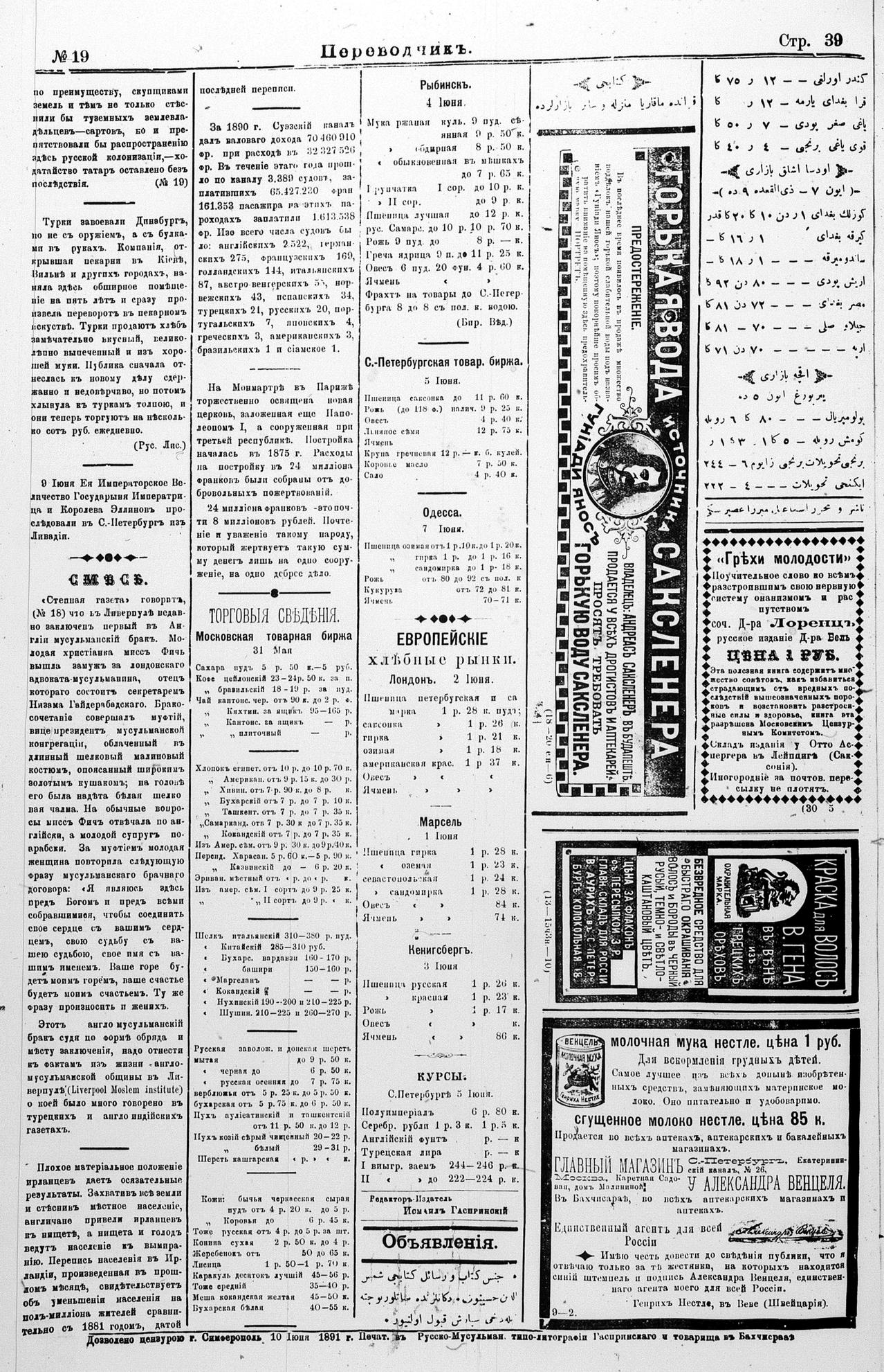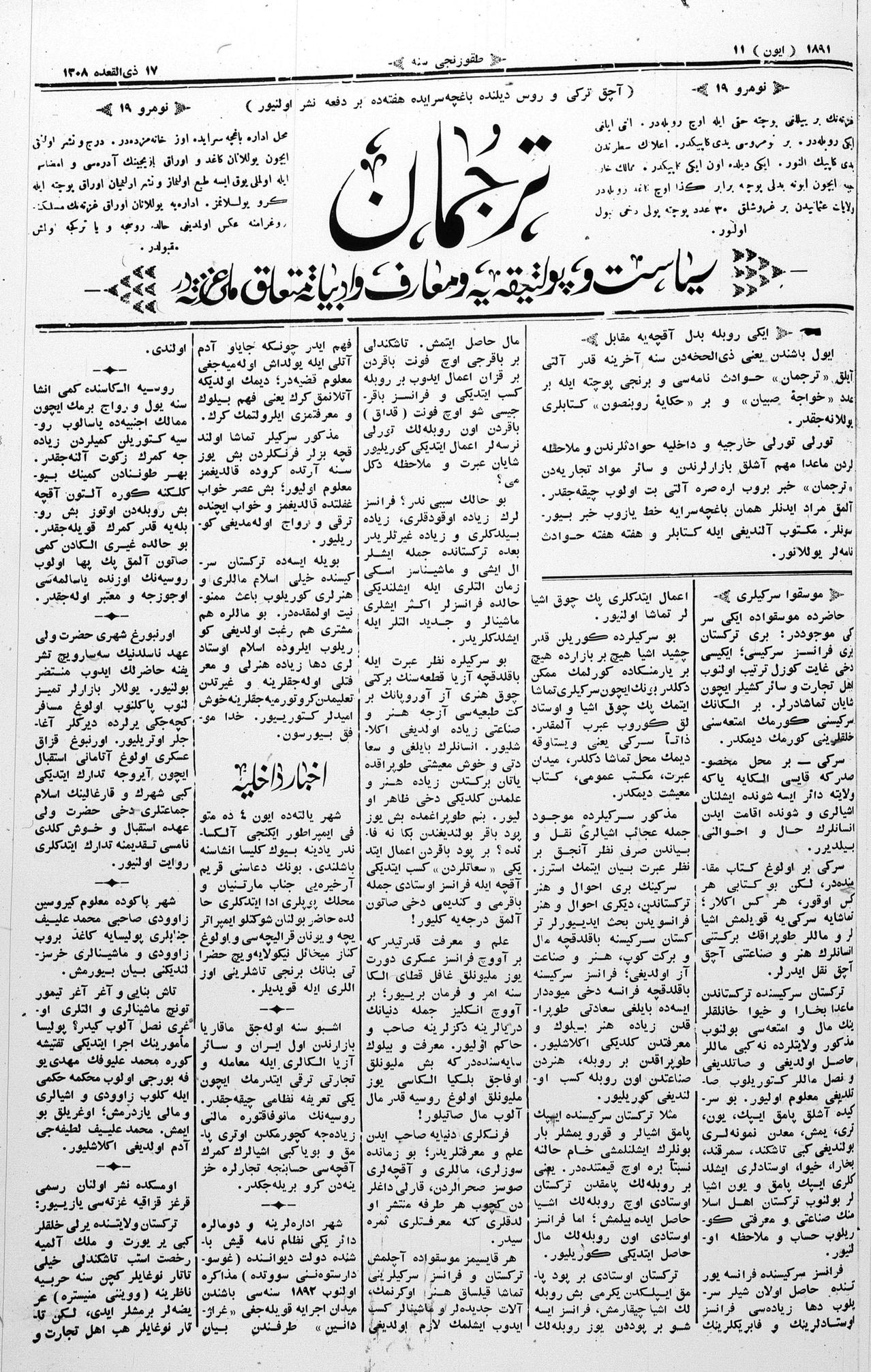 Tercüman, 11 June 1891 Year 9 No 19