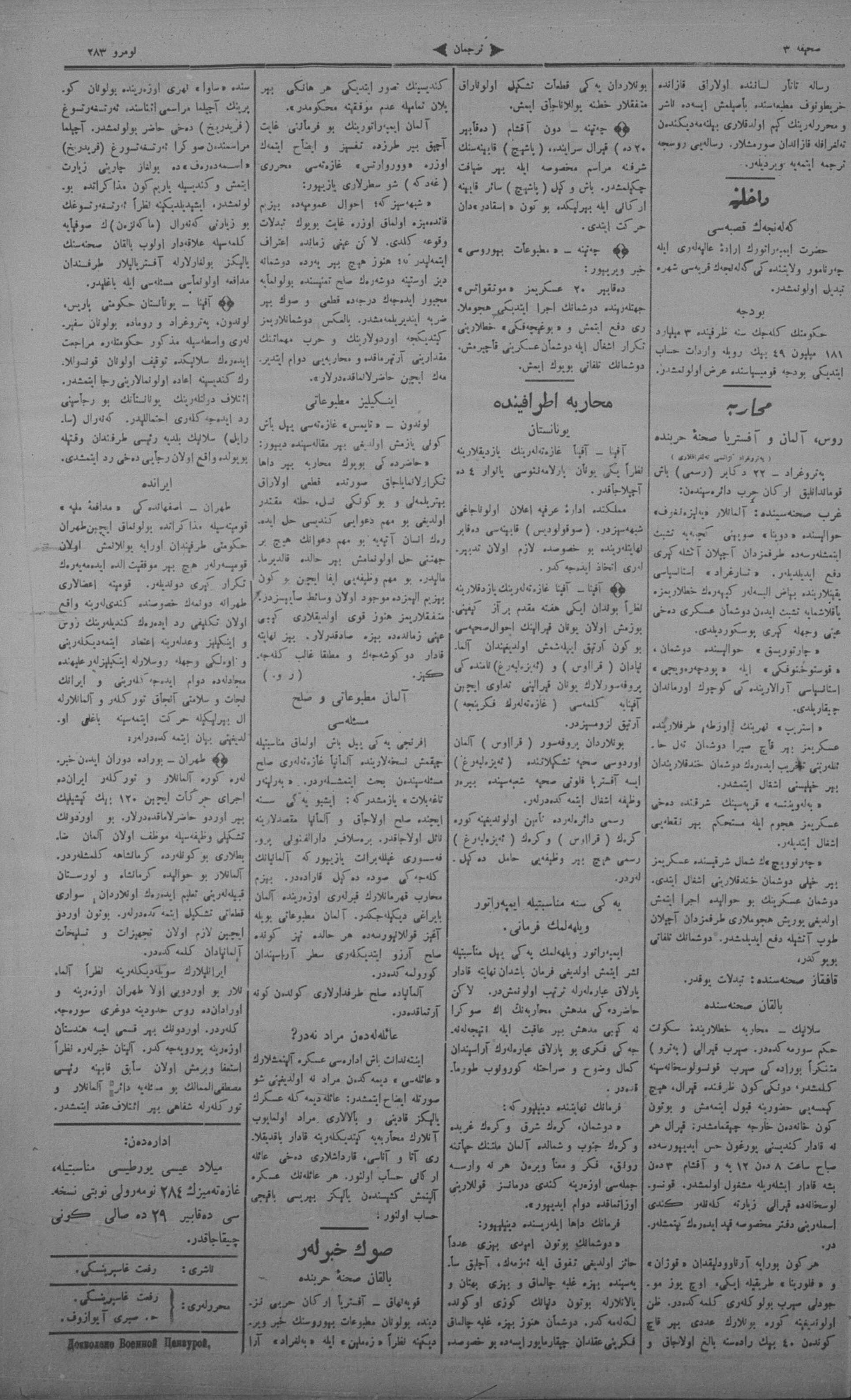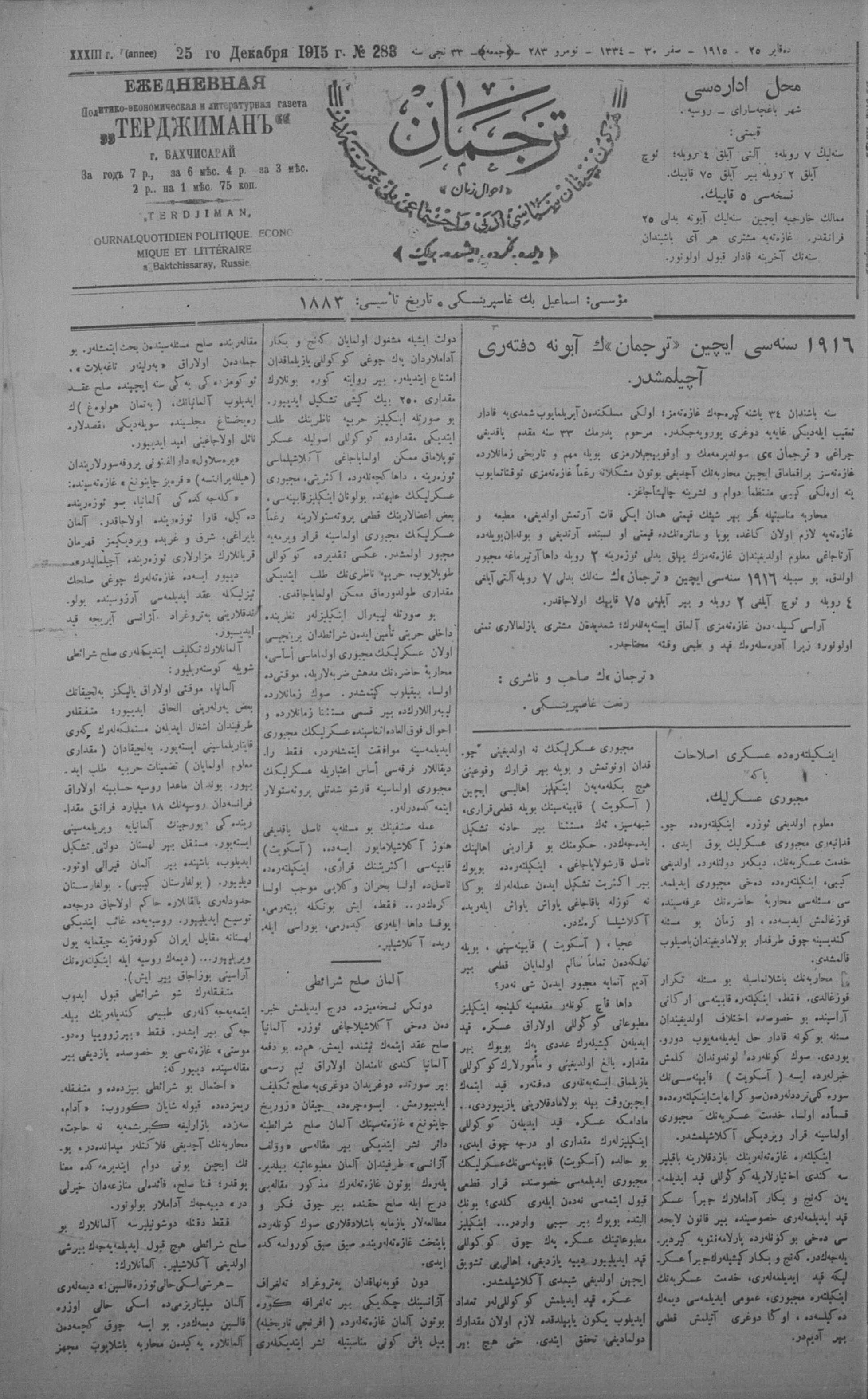 Tercüman, 25 December 1915 Year 33 No 283