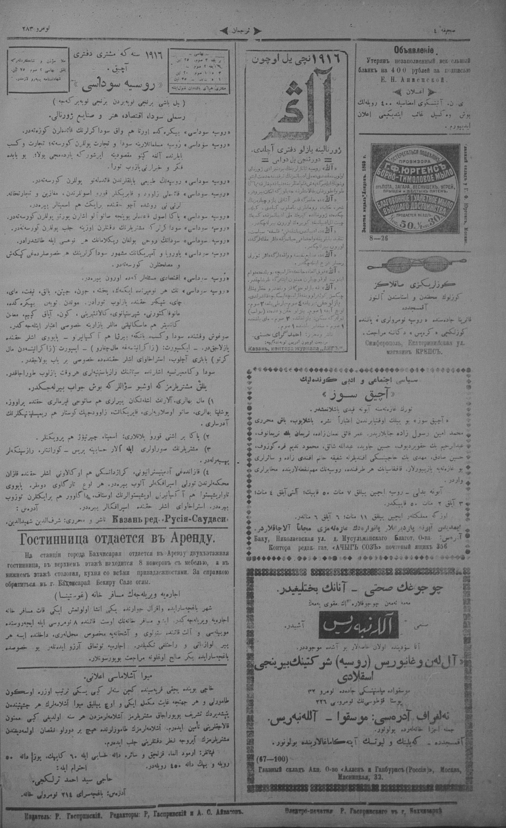 Turkish-Russian newspaper published in Crimea by İsmail Gaspıralı.
