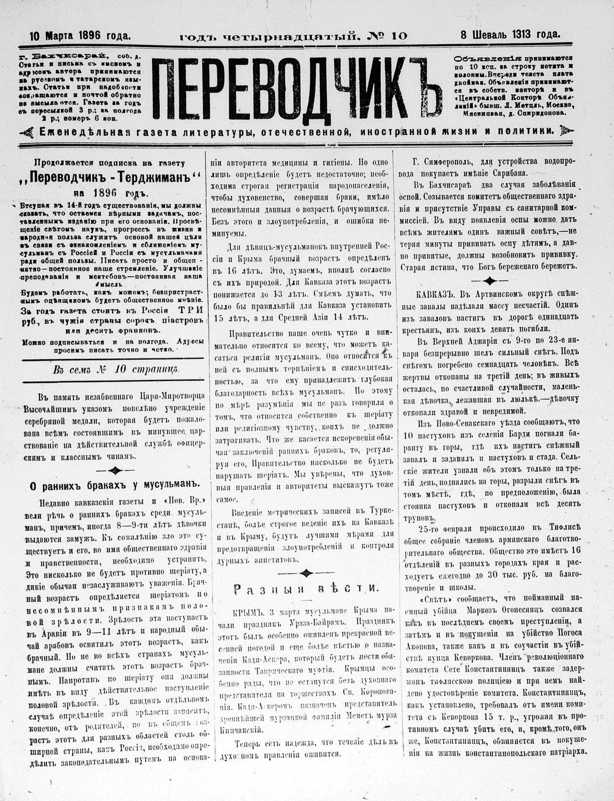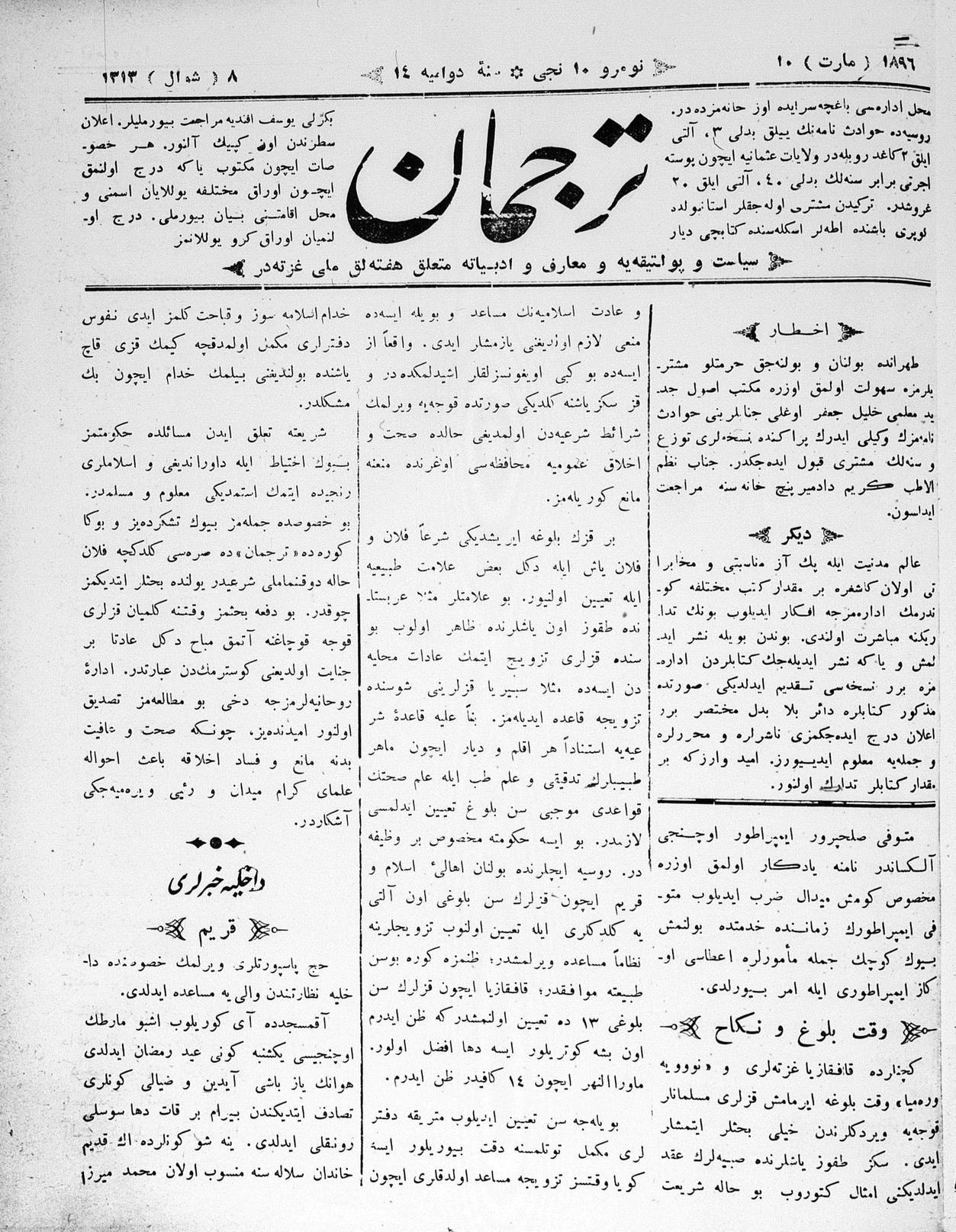 Tercüman, 10 March 1896 Year 14 No 10