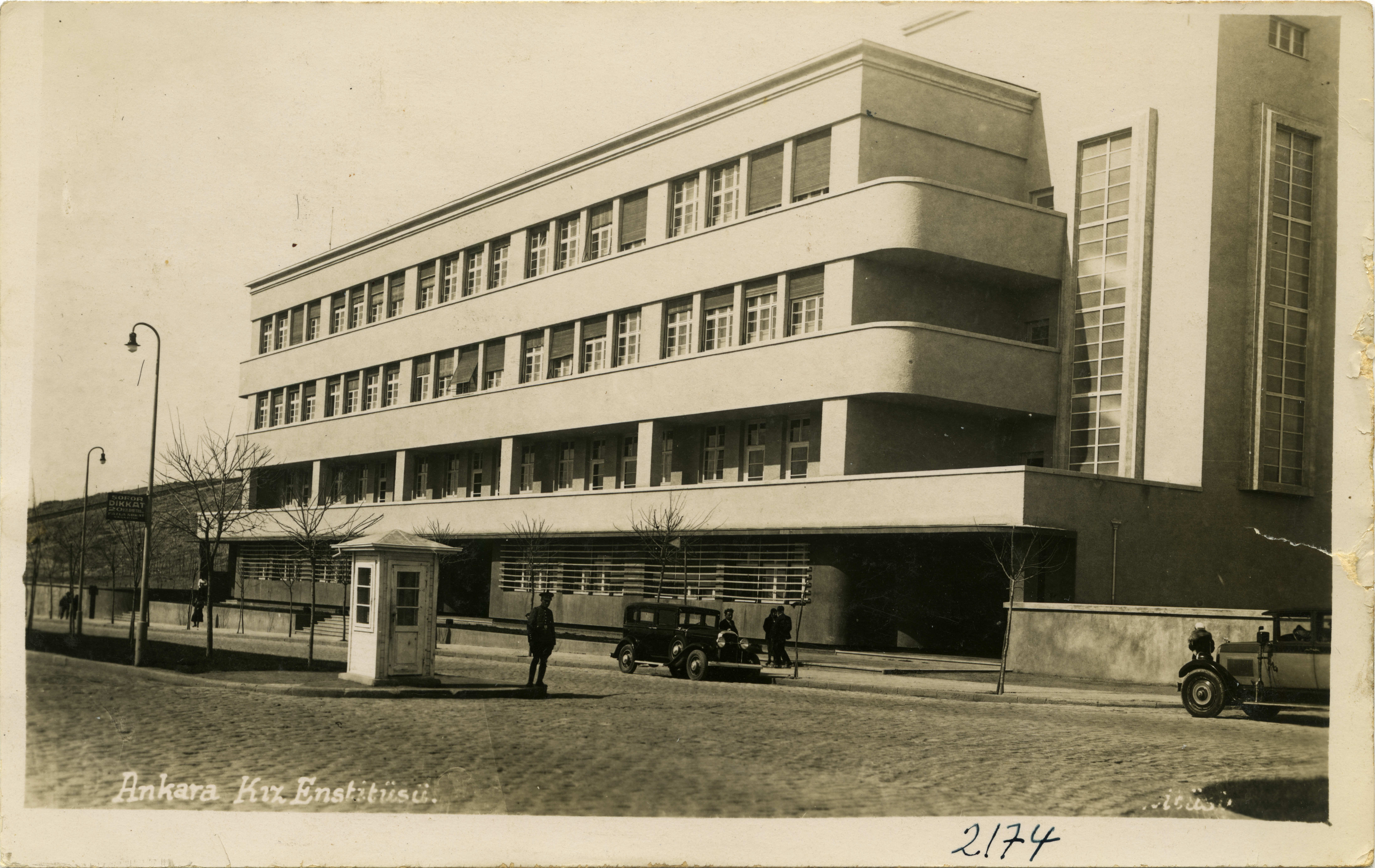 A postcard sent from Ankara to Abid, Seyfiye on 29.08.1933, mentions that it has been a month since she left all her loved ones in Istanbul, but she was only able to write the postcard this evening; the photograph on the postcard is of the İsmet Paşa Girls' Institute, a serious educational institution, one that doesn't even exist in France.