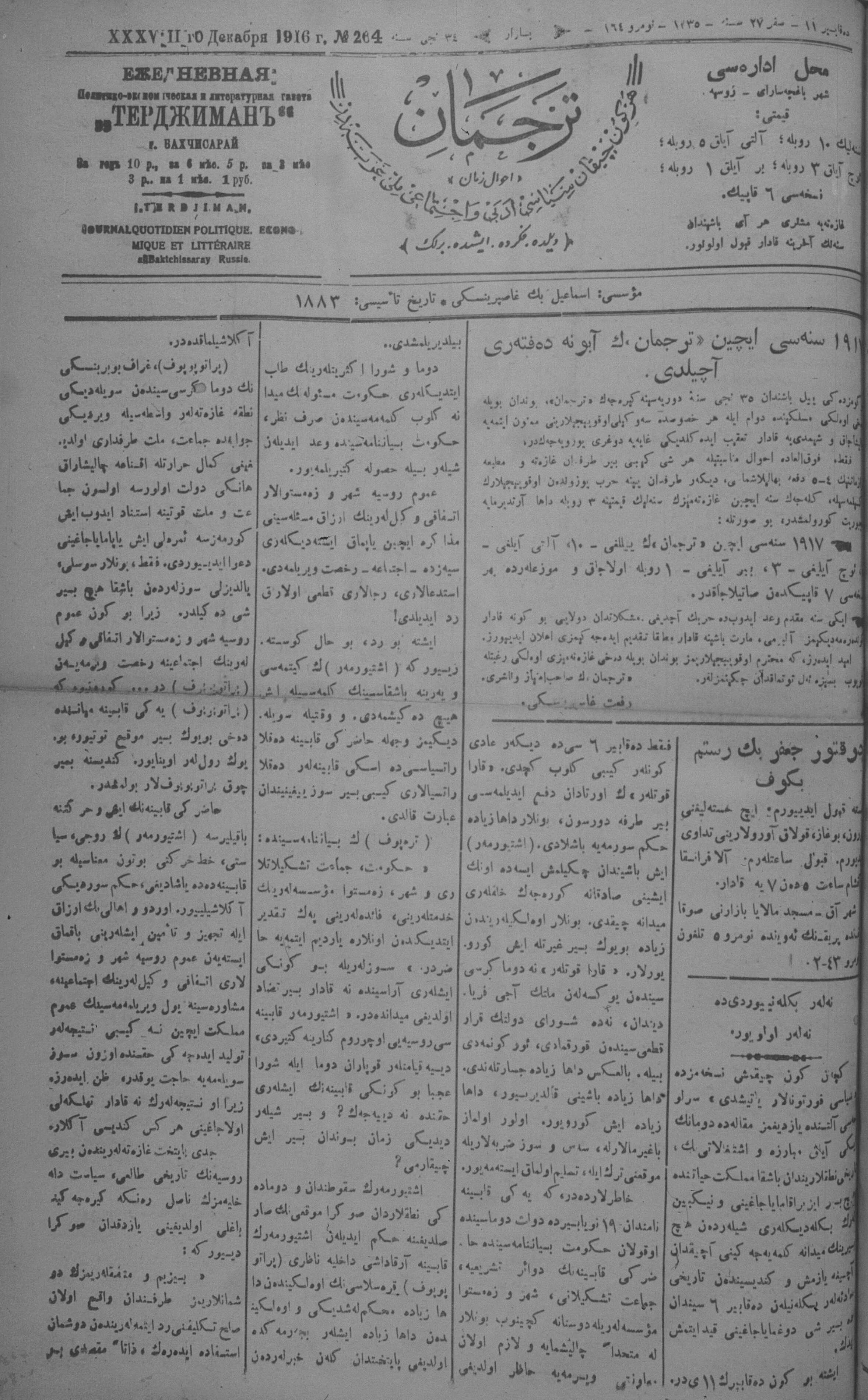 Tercüman, 11 December 1916 Year 34 No 264
