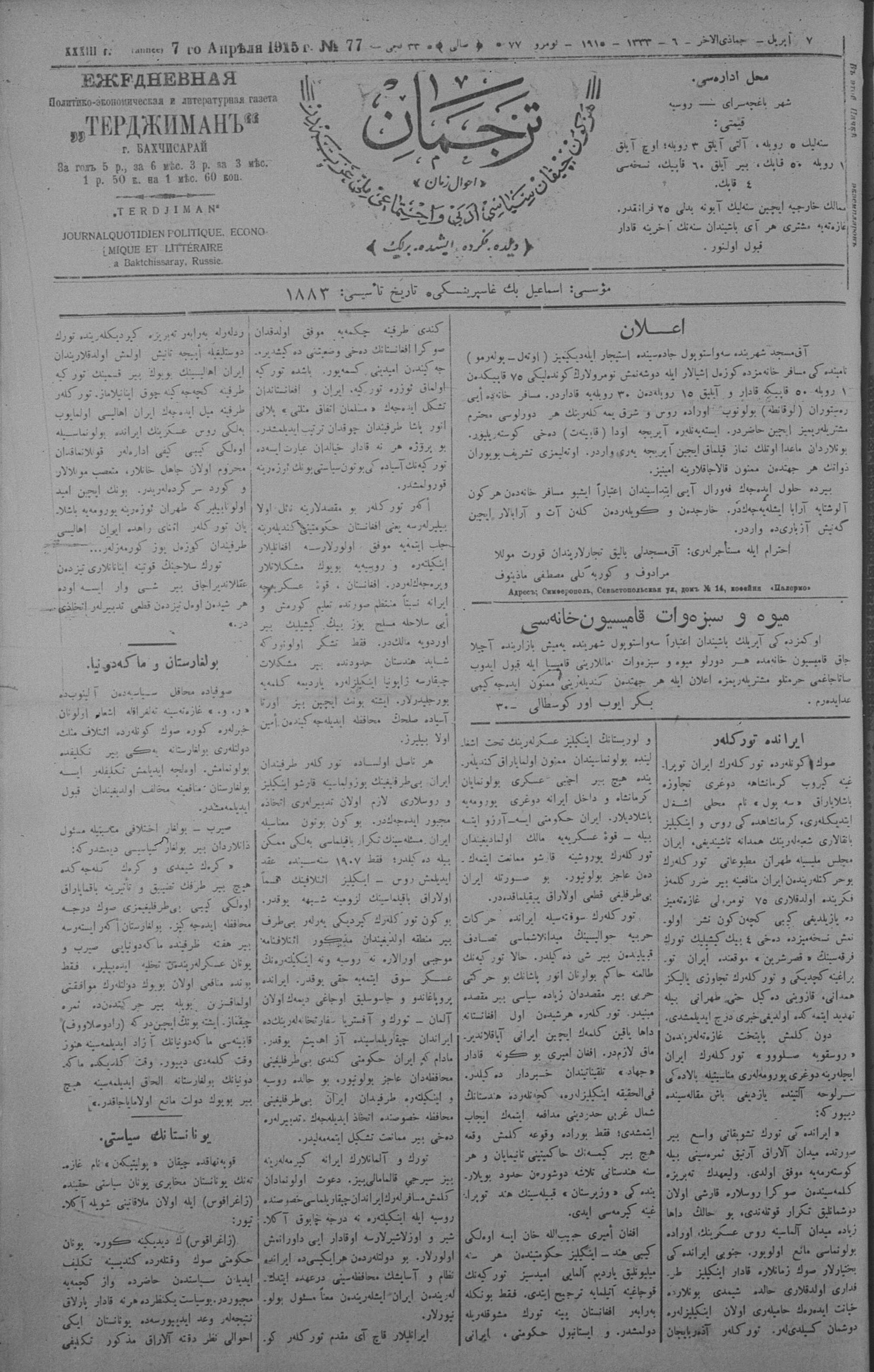 Tercüman, 07 April 1915 Year 33 No 77